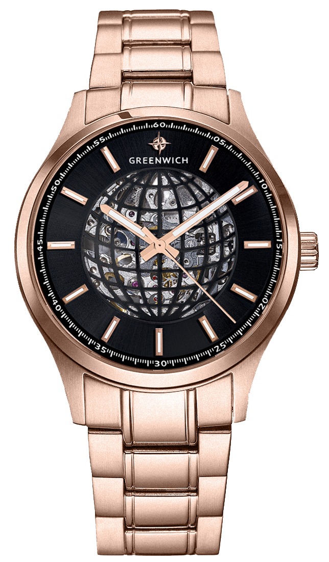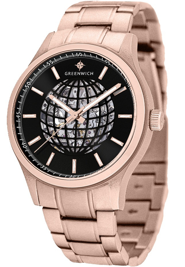 Greenwich Globe — элегантные мужские наручные часы, которые станут настоящим украшением вашего образа. Модель относится к серии Globe и представляет собой изысканное сочетание классического дизайна и современных технологий.