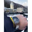 Браслет из нержавеющей стали надёжно фиксируется на запястье с помощью удобной застёжки-клипсы с логотипом бренда. Водозащита 10 атмосфер позволяет не снимать часы во время плавания и занятий водными видами спорта. Диаметр корпуса составляет 43 мм, что делает часы достаточно заметными на руке, но при этом не громоздкими.