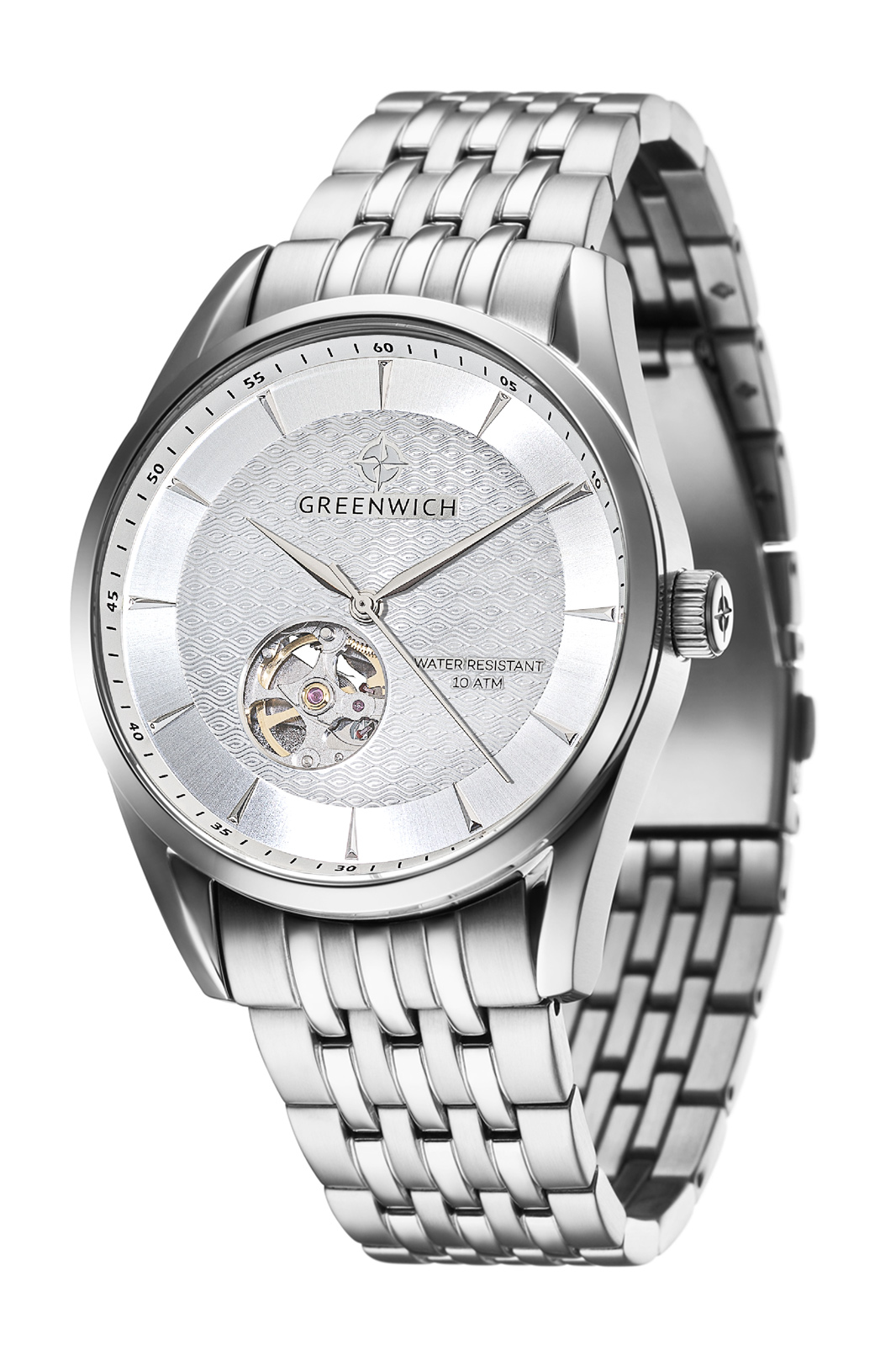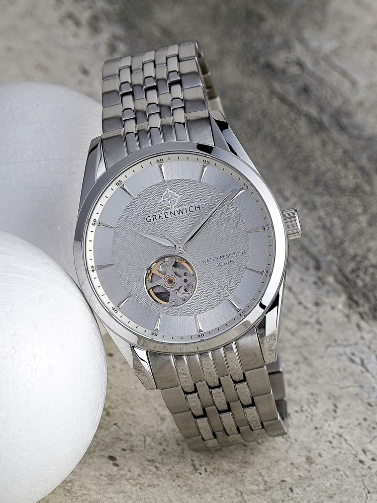 Мужские механические наручные часы Greenwich коллекции Good Luck Deep представляют собой изысканное сочетание классического дизайна и современных технологий. Корпус часов, выполненный из высококачественной нержавеющей стали, отличается безупречной полировкой, которая придает изделию роскошный блеск и обеспечивает долговечность. Циферблат часов привлекает внимание своей лаконичностью и четкостью исполнения. Минеральное стекло, устойчивое к появлению царапин, надежно защищает циферблат от внешних воздействий. Присутствует апертура открытого баланса. Браслет, изготовленный из нержавеющей стали, идеально дополняет общий дизайн и обеспечивает комфортное ношение на запястье. Надежная застежка гарантирует, что часы останутся на руке в любой ситуации. Водозащита позволяет не снимать часы во время мытья рук и в дождливую погоду, с часами так же можно плавать, что делает их практичным аксессуаром для повседневного использования. Прозрачная завинчивающаяся задняя крышка открывает вид на слаженную работу японского механизма с автоподзаводом, механизм часов отличается высокой точностью хода и надежностью. Эти часы станут отличным выбором для тех, кто ценит классический стиль и качество исполнения. Они прекрасно дополнят как деловой костюм, так и повседневный гардероб, подчеркивая хороший вкус и статус своего владельца. Гарантия 2 года.