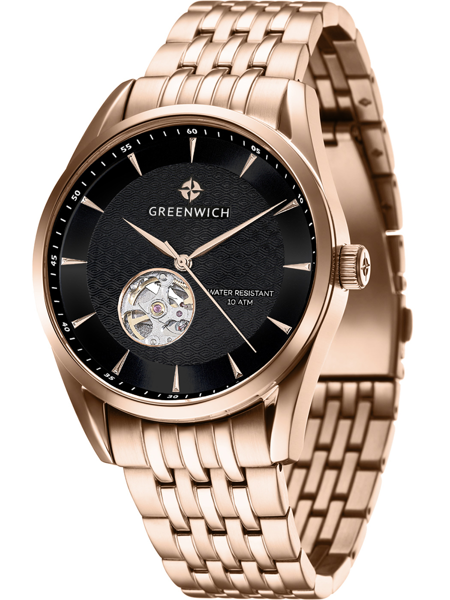 Мужские механические наручные часы Greenwich коллекции Good Luck Deep представляют собой изысканное сочетание классического дизайна и современных технологий. Корпус часов, выполненный из высококачественной нержавеющей стали, отличается безупречной полировкой, которая придает изделию роскошный блеск и обеспечивает долговечность. Циферблат часов привлекает внимание своей лаконичностью и четкостью исполнения. Минеральное стекло, устойчивое к появлению царапин, надежно защищает циферблат от внешних воздействий. Присутствует апертура открытого баланса. Браслет, изготовленный из нержавеющей стали, идеально дополняет общий дизайн и обеспечивает комфортное ношение на запястье. Надежная застежка гарантирует, что часы останутся на руке в любой ситуации. Водозащита позволяет не снимать часы во время мытья рук и в дождливую погоду, с часами так же можно плавать, что делает их практичным аксессуаром для повседневного использования. Прозрачная завинчивающаяся задняя крышка открывает вид на слаженную работу японского механизма с автоподзаводом, механизм часов отличается высокой точностью хода и надежностью. Эти часы станут отличным выбором для тех, кто ценит классический стиль и качество исполнения. Они прекрасно дополнят как деловой костюм, так и повседневный гардероб, подчеркивая хороший вкус и статус своего владельца. Гарантия 2 года.