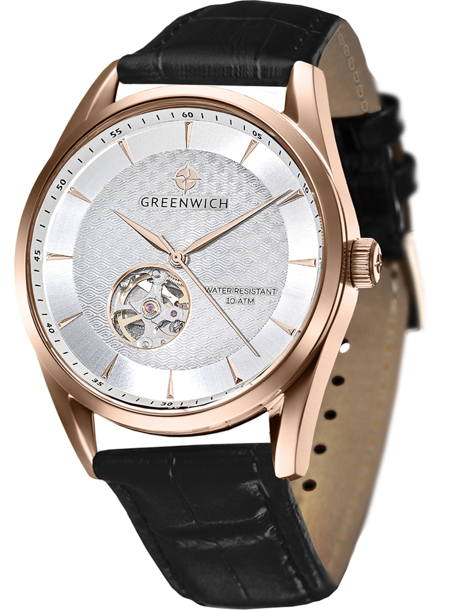 Мужские механические наручные часы Greenwich коллекции Good Luck Deep представляют собой изысканное сочетание классического дизайна и современных технологий. Корпус часов, выполненный из высококачественной нержавеющей стали, отличается безупречной полировкой, которая придает изделию роскошный блеск и обеспечивает долговечность. Циферблат часов привлекает внимание своей лаконичностью и четкостью исполнения. Минеральное стекло, устойчивое к появлению царапин, надежно защищает циферблат от внешних воздействий. Присутствует апертура открытого баланса. Ремешок, изготовленный из натуральной кожи, идеально дополняет общий дизайн и обеспечивает комфортное ношение на запястье. Водозащита позволяет не снимать часы во время мытья рук и в дождливую погоду, с часами так же можно плавать, что делает их практичным аксессуаром для повседневного использования. Прозрачная завинчивающаяся задняя крышка открывает вид на слаженную работу японского механизма с автоподзаводом, механизм часов отличается высокой точностью хода и надежностью. Эти часы станут отличным выбором для тех, кто ценит классический стиль и качество исполнения. Они прекрасно дополнят как деловой костюм, так и повседневный гардероб, подчеркивая хороший вкус и статус своего владельца. Гарантия 2 года.