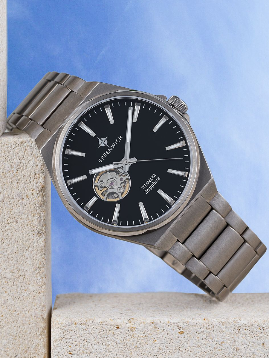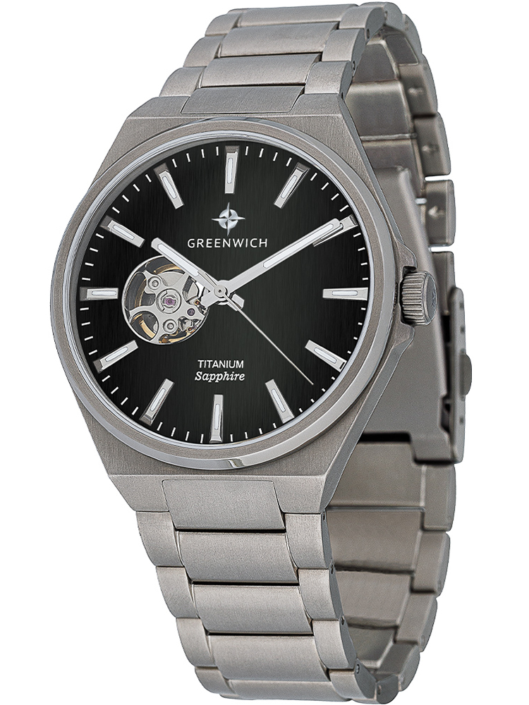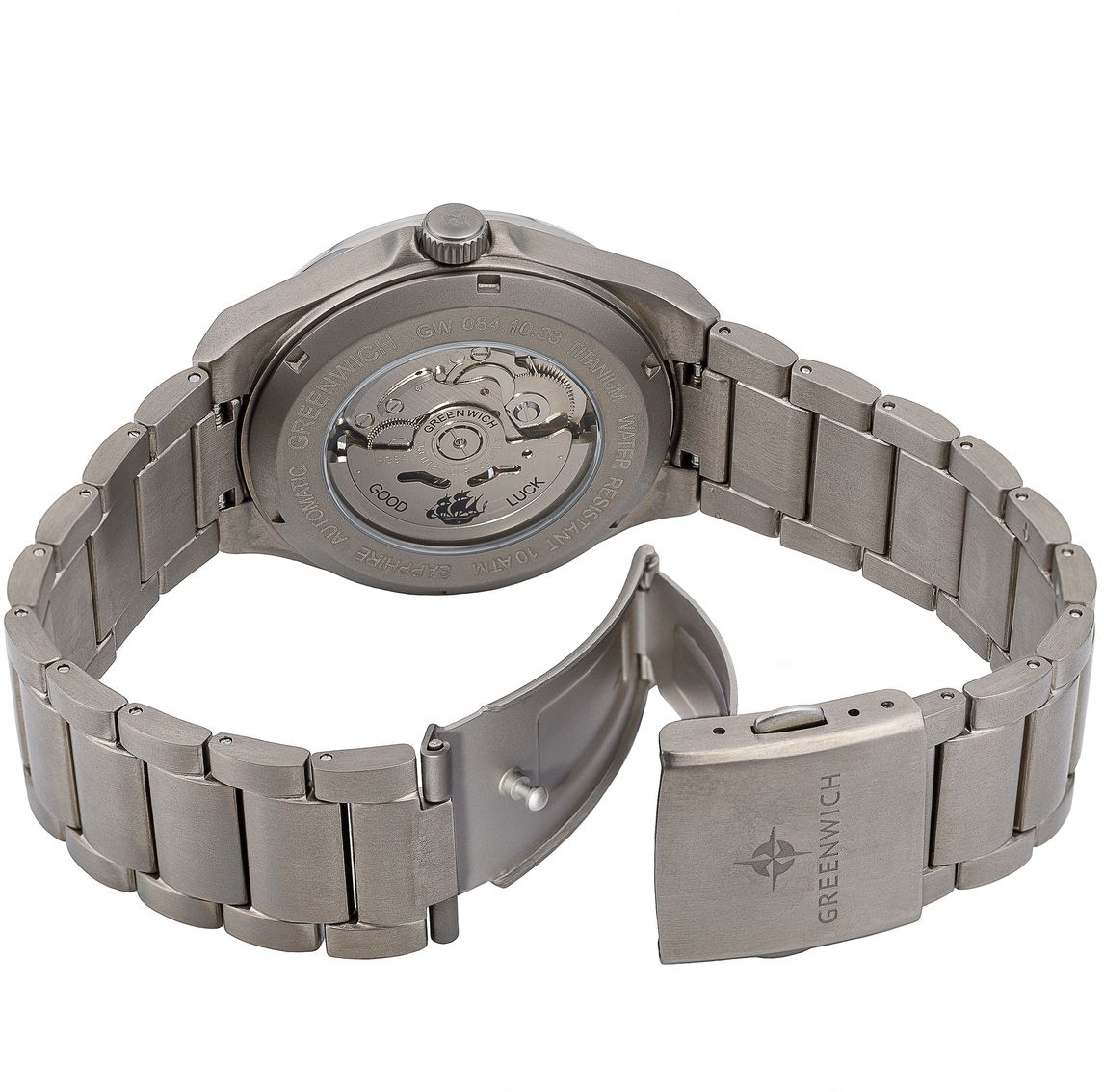 Водозащита уровня 10 атмосфер (100 метров) позволяет не снимать часы во время плавания, занятий водными видами спорта или принятия душа, надежно оберегая механизм от попадания влаги. Браслет выполнен из того же легкого титана, что и корпус, и оснащен удобной застежкой-раскладушкой с кнопкой. В целом, модель Greenwich Dolphin - это образец сбалансированных часов, где практичность, долговечность и эстетика объединены в гармоничное целое.