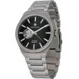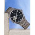 Циферблат часов имеет лаконичный дизайн с четко читаемыми метками и стрелками, покрытыми люминесцентным составом для удобного считывания времени в темноте. За защиту стекла от царапин и ударов отвечает сапфировое стекло, которое повышает читаемость при ярком освещении. На циферблате присутствует окошко открытого баланса, сквозь которое можно наблюдать за завораживающей работой японского механизма TMI, известным своей точностью и неприхотливостью в обслуживании.