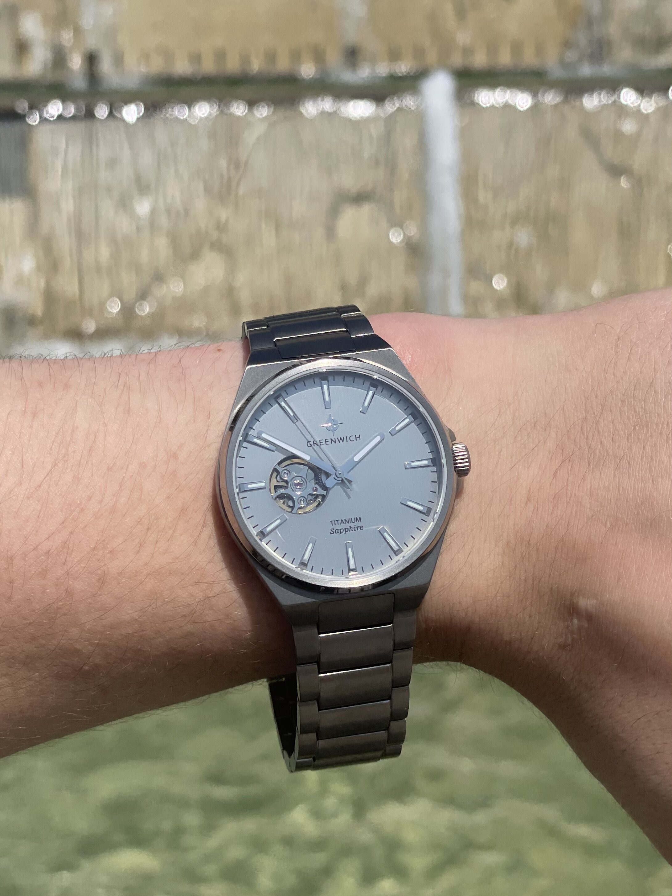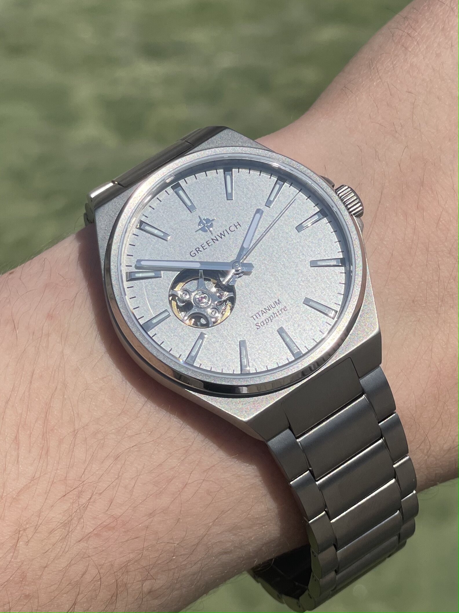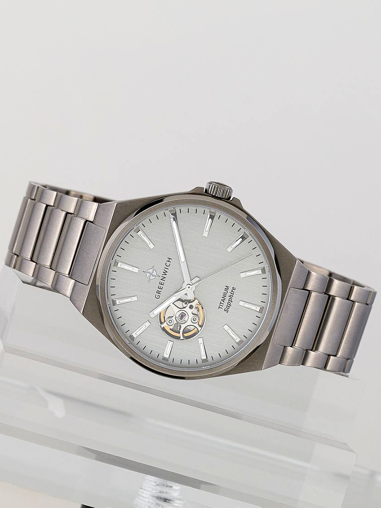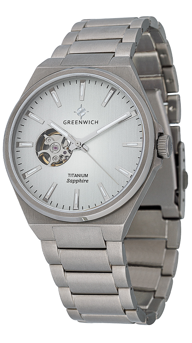 Водозащита уровня 10 атмосфер (100 метров) позволяет не снимать часы во время плавания, занятий водными видами спорта или принятия душа, надежно оберегая механизм от попадания влаги. Браслет выполнен из того же легкого титана, что и корпус, и оснащен удобной застежкой-раскладушкой с кнопкой. В целом, модель Greenwich Dolphin - это образец сбалансированных часов, где практичность, долговечность и эстетика объединены в гармоничное целое.