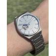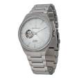 Циферблат часов имеет лаконичный дизайн с четко читаемыми метками и стрелками, покрытыми люминесцентным составом для удобного считывания времени в темноте. За защиту стекла от царапин и ударов отвечает сапфировое стекло, которое повышает читаемость при ярком освещении. На циферблате присутствует окошко открытого баланса, сквозь которое можно наблюдать за завораживающей работой японского механизма TMI, известным своей точностью и неприхотливостью в обслуживании.