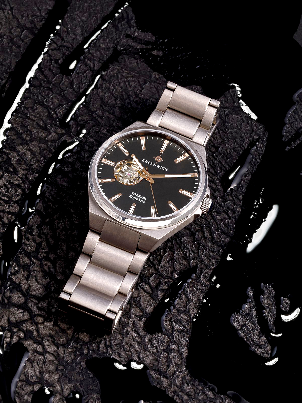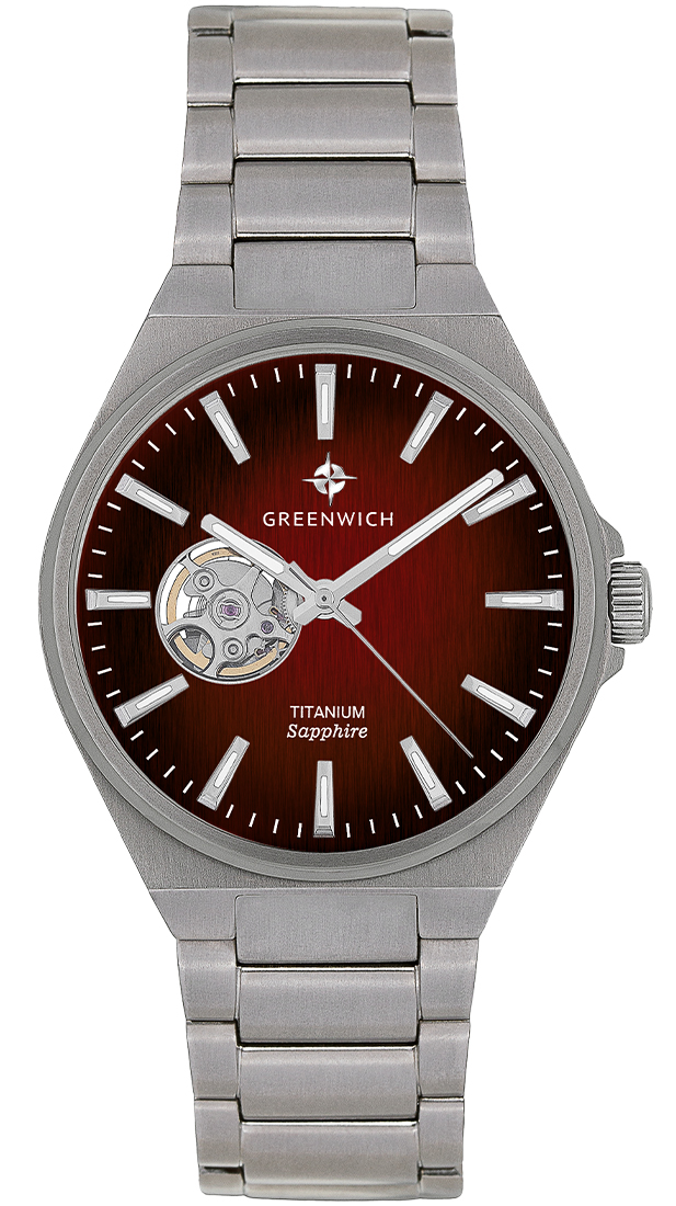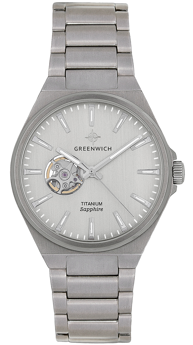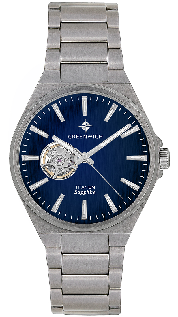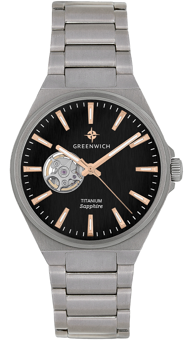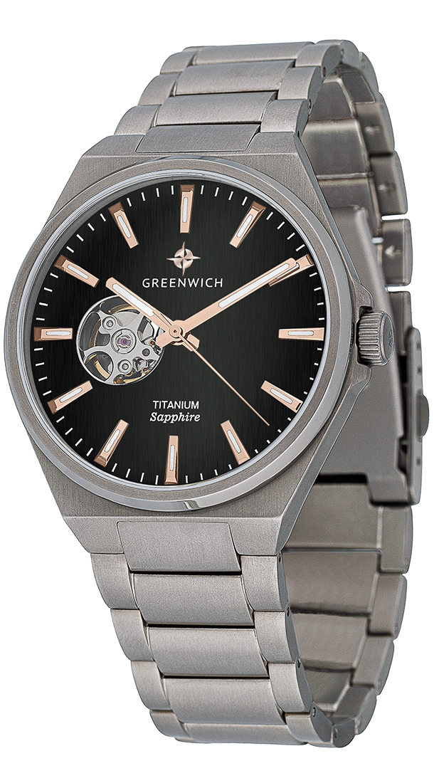 Водозащита уровня 10 атмосфер (100 метров) позволяет не снимать часы во время плавания, занятий водными видами спорта или принятия душа, надежно оберегая механизм от попадания влаги. Браслет выполнен из того же легкого титана, что и корпус, и оснащен удобной застежкой-раскладушкой с кнопкой. В целом, модель Greenwich Dolphin - это образец сбалансированных часов, где практичность, долговечность и эстетика объединены в гармоничное целое.