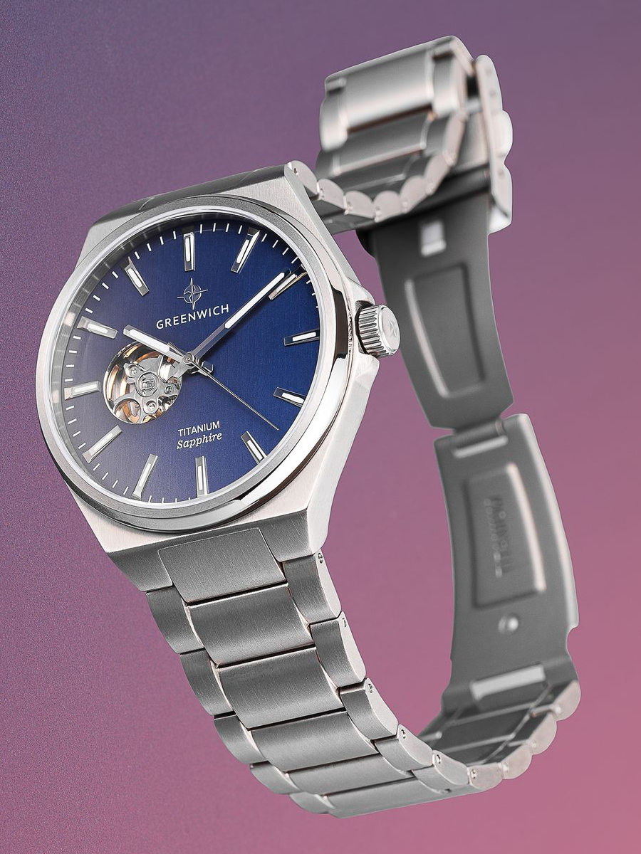 Водозащита уровня 10 атмосфер (100 метров) позволяет не снимать часы во время плавания, занятий водными видами спорта или принятия душа, надежно оберегая механизм от попадания влаги. Браслет выполнен из того же легкого титана, что и корпус, и оснащен удобной застежкой-раскладушкой с кнопкой. В целом, модель Greenwich Dolphin - это образец сбалансированных часов, где практичность, долговечность и эстетика объединены в гармоничное целое.
