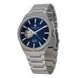 Циферблат часов имеет лаконичный дизайн с четко читаемыми метками и стрелками, покрытыми люминесцентным составом для удобного считывания времени в темноте. За защиту стекла от царапин и ударов отвечает сапфировое стекло, которое повышает читаемость при ярком освещении. На циферблате присутствует окошко открытого баланса, сквозь которое можно наблюдать за завораживающей работой японского механизма TMI, известным своей точностью и неприхотливостью в обслуживании.