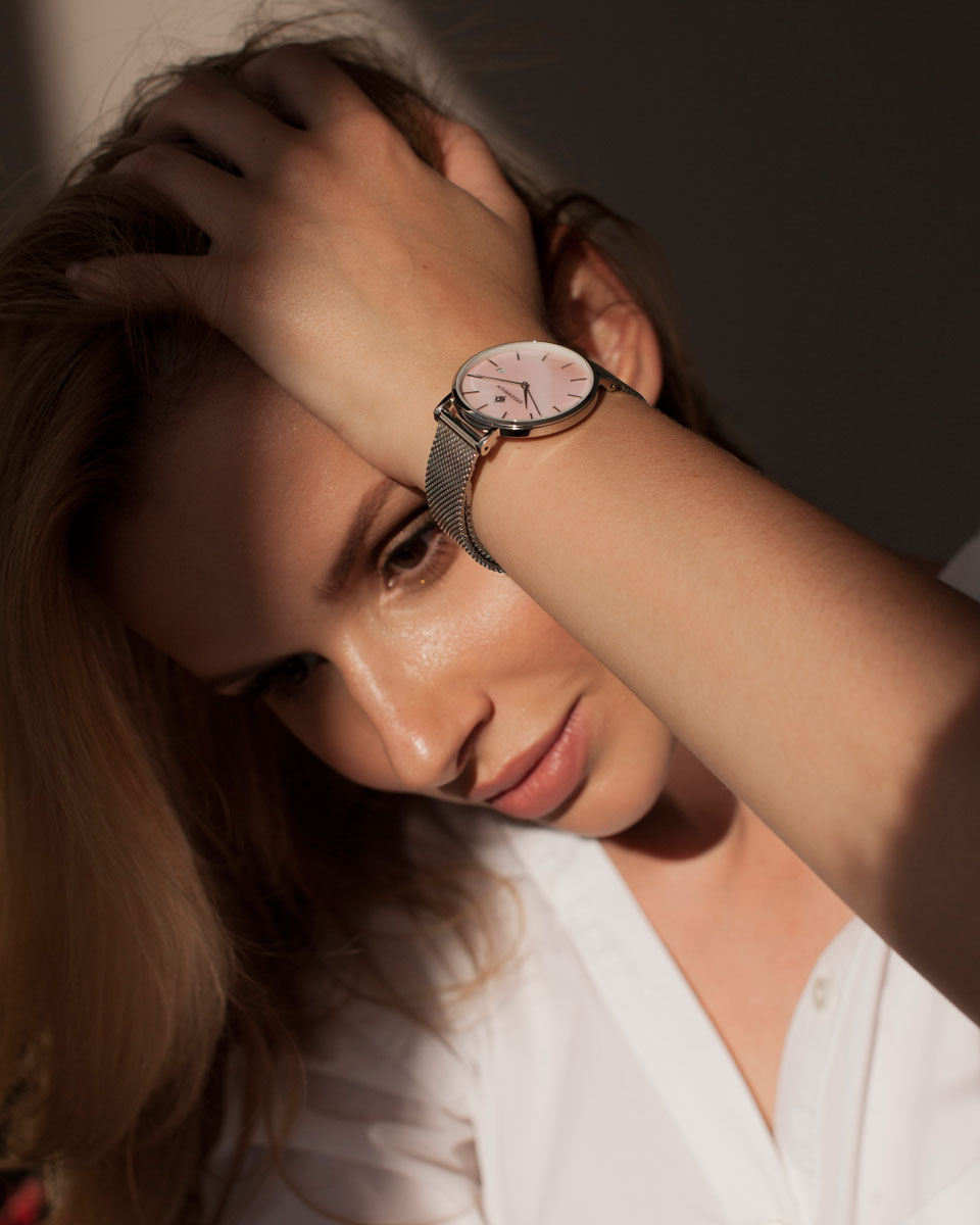 Компактный размер корпуса в 35 миллиметров делает часы идеальным аксессуаром для любого запястья, а браслет с миланским плетением из нержавеющей стали обеспечивает комфортное ношение и надежную фиксацию на руке. Раскладная застежка с фиксатором предотвращает случайное раскрытие и позволяет легко регулировать длину браслета.