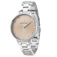 Циферблат украшен изысканным узором в виде вихревых лучей, создающих эффект движения и бесконечности. Серебряные накладные индексы с множеством граней эффектно отражают свет, обеспечивая отличную читаемость времени. Часовая и минутная стрелки выполнены в форме изящных лепестков, добавляя модели женственности и очарования.