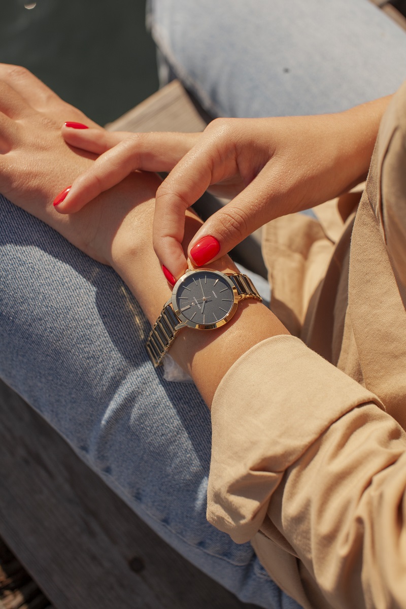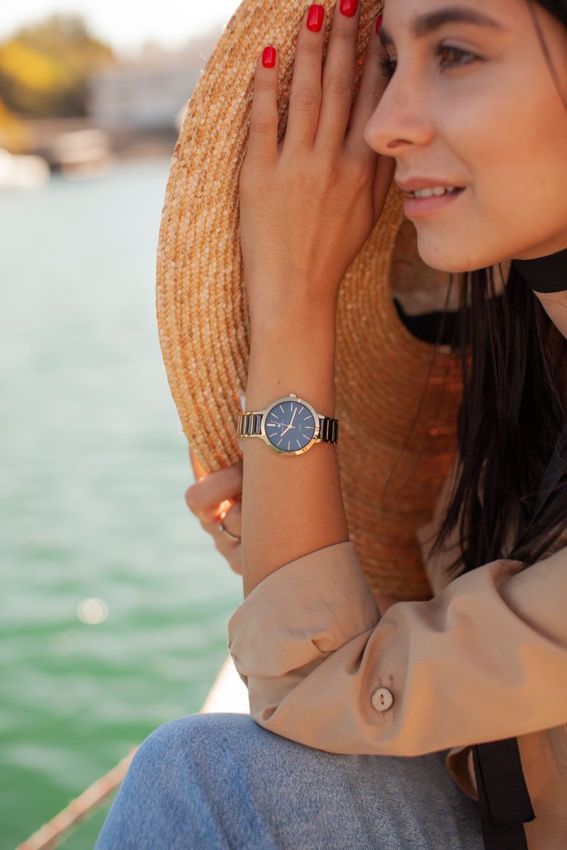 Лаконичные и утончённые часы Fortune воплощают современную элегантность в классическом дизайне. Круглый корпус диаметром 32 мм выполнен из гипоаллергенной нержавеющей стали, идеально подходящей для ежедневного ношения. На матовом черном циферблате чётко выделяются полированные риски и стрелки часов, минут и секунд, обеспечивая отличную читаемость. За точность хода отвечает надежный кварцевый механизм Miyota.