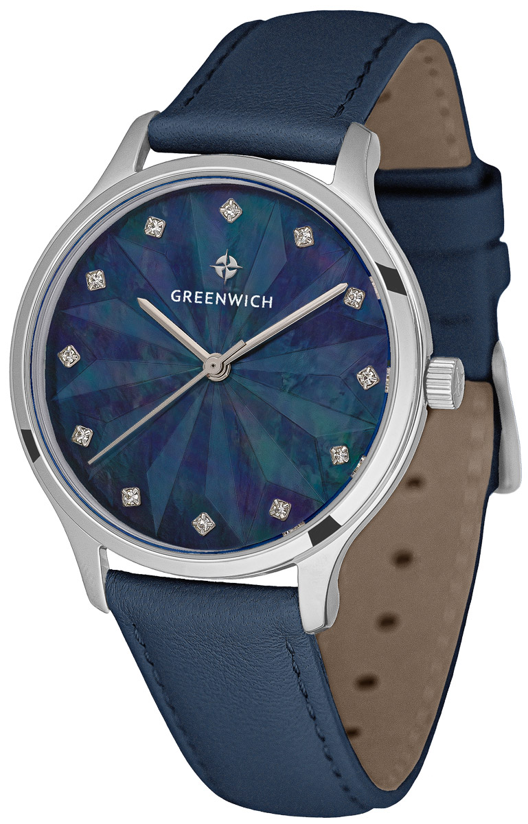 Минеральное стекло устойчиво к появлению царапин и надежно защищает циферблат. Модель комплектуется элегантным ремешком из натуральной кожи черного цвета, который дополнен надежной застежкой-пряжкой с фирменным логотипом Greenwich.