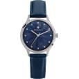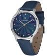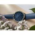 Корпус часов выполнен из высококачественной гипоаллергенной нержавеющей стали 316L, имеет классический круглый дизайн и компактный размер 34 мм в диаметре. Особое внимание привлекает уникальный циферблат из натурального перламутра, украшенный изящной гравировкой в виде звездного неба и декорированный сверкающими фианитами, надежно закрепленными в кастах.