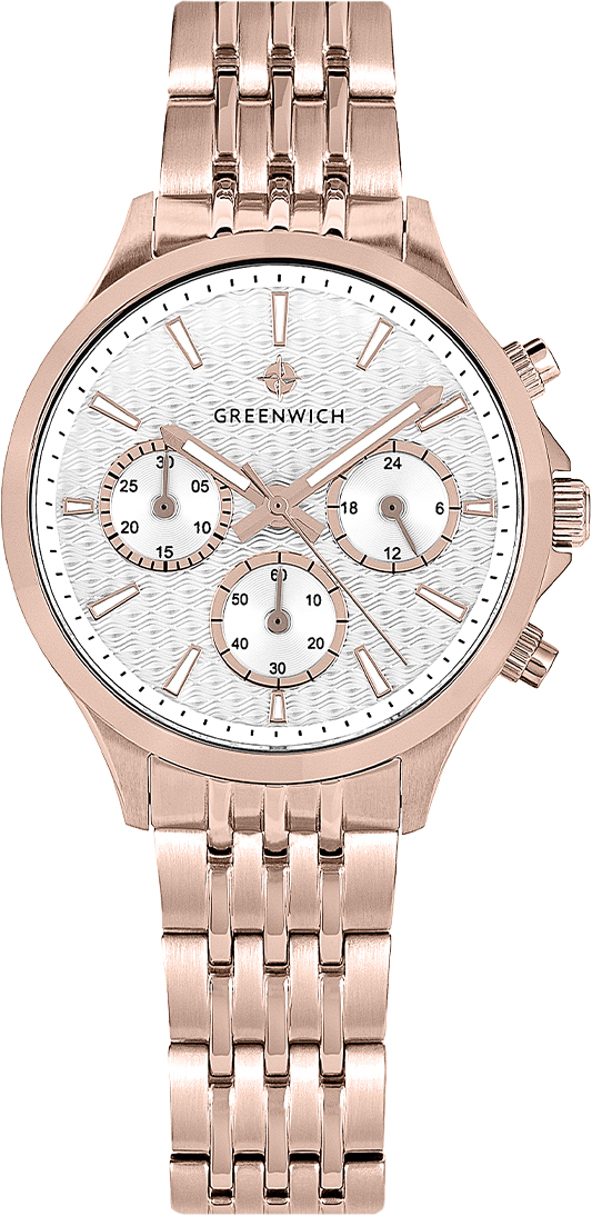 Элегантные женские часы Greenwich из коллекции Mermaid представляют собой изысканное сочетание стиля и функциональности. Модель оснащена надёжным кварцевым механизмом Miyota с функцией хронографа, который обеспечивает высокую точность хода. Корпус часов выполнен из высококачественной нержавеющей стали и имеет оптимальный диаметр 35 миллиметров.