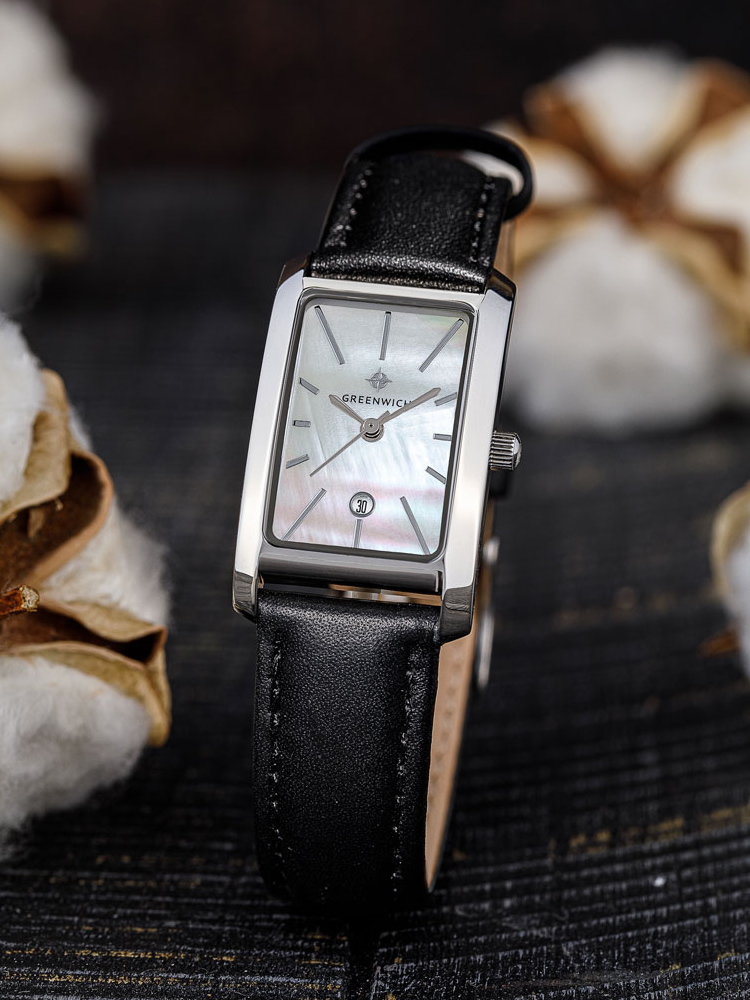 Элегантные женские часы Greenwich Vesta представляют собой изысканное сочетание классического дизайна и современных технологий. Модель выполнена в благородном прямоугольном корпусе из высококачественной нержавеющей стали с зеркальной полировкой, что придает аксессуару роскошный внешний вид. Компактные размеры корпуса 21х35 миллиметров обеспечивают комфортную посадку на запястье, а эргономичная форма делает часы максимально удобными в повседневном использовании.
