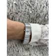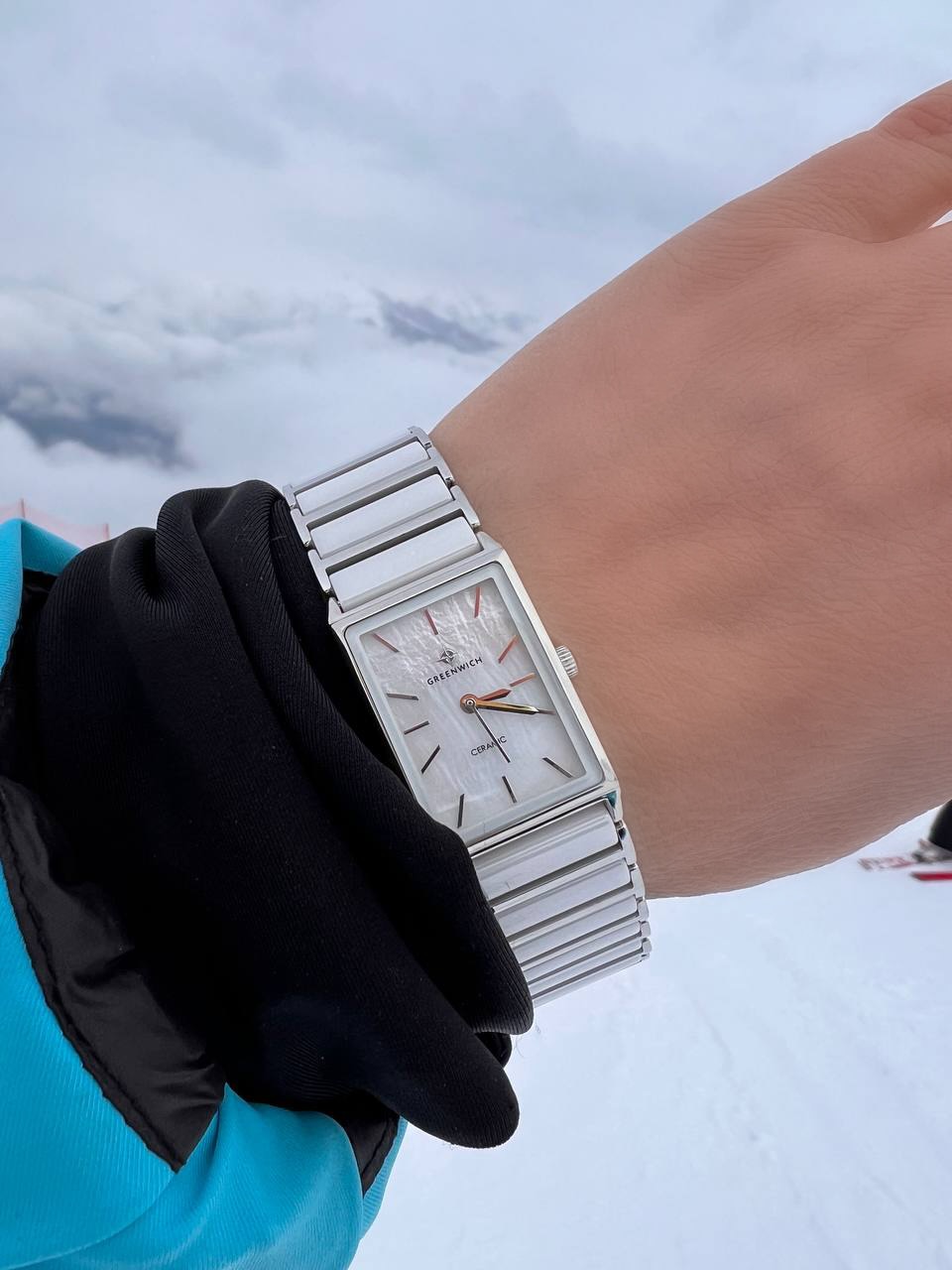 Уникальной особенностью модели является комбинированный браслет, сочетающий в себе звенья из нержавеющей стали и высокотехнологичной керамики. Такое решение не только создает интересный визуальный эффект, но и обеспечивает дополнительный комфорт при носке – керамический элемент быстро нагревается до температуры тела и остается теплым даже в прохладную погоду.
