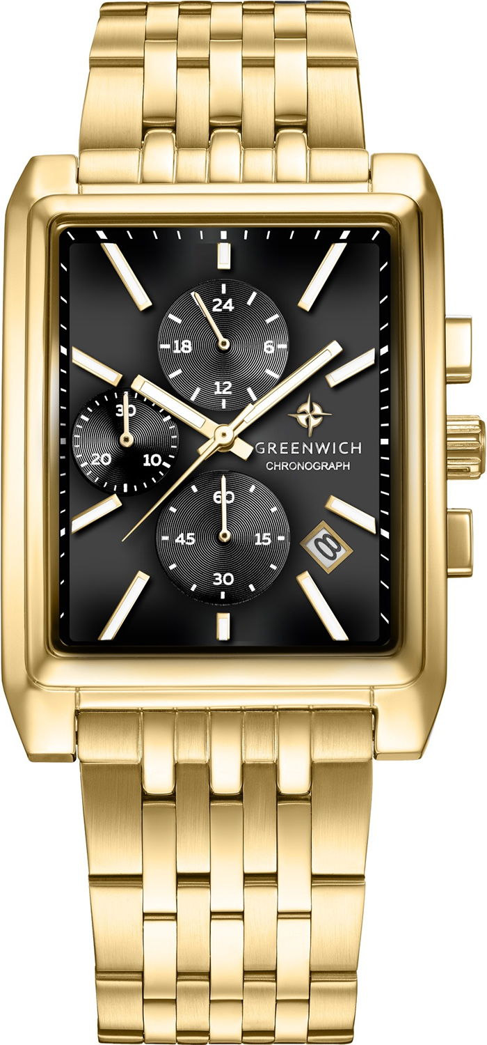 Стильные мужские часы Greenwich Galeon Chrono представляют собой гармоничное сочетание спортивного функционала и классической элегантности. Модель выполнена в прямоугольном корпусе из высококачественной нержавеющей стали 316L с размерами 33х40 миллиметров, что делает их универсальным аксессуаром для повседневного использования.