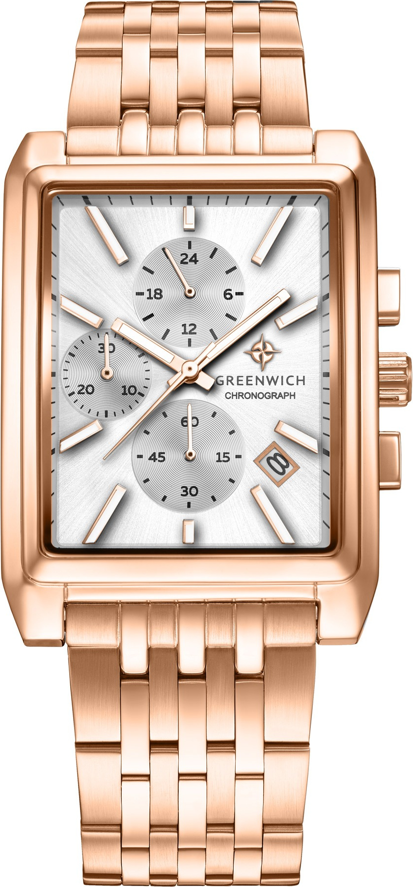 Стильные мужские часы Greenwich Galeon Chrono представляют собой гармоничное сочетание спортивного функционала и классической элегантности. Модель выполнена в прямоугольном корпусе из высококачественной нержавеющей стали 316L с размерами 33х40 миллиметров, что делает их универсальным аксессуаром для повседневного использования.