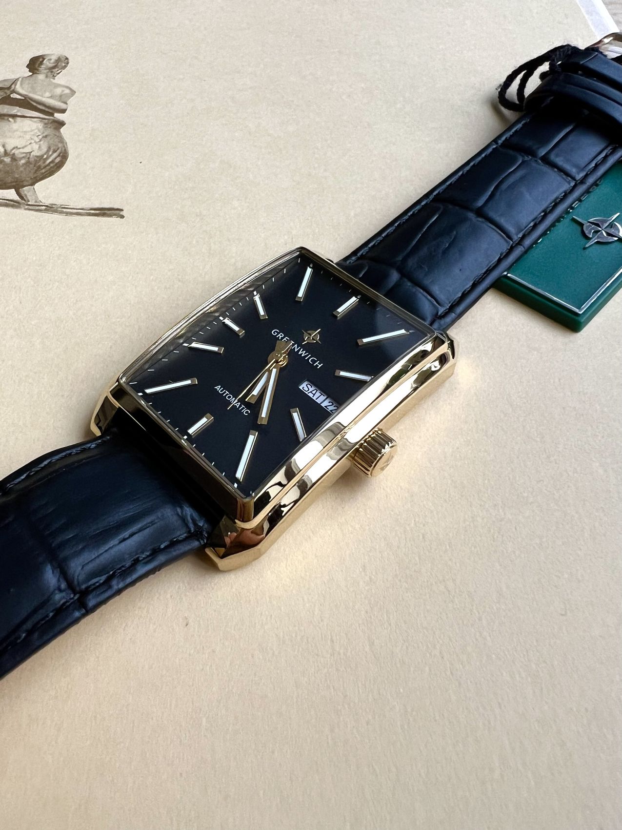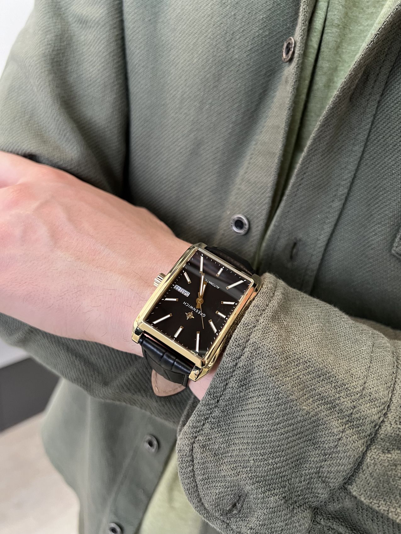 Наручные часы Greenwich Caravel - это мужские механические часы с автоподзаводом, представляющие собой современное прочтение классики. Модель выполнена в элегантном прямоугольном корпусе со скошенными углами размером 33х46 мм; корпус изготовлен из гипоаллергенной нержавеющей стали 316L, что обеспечивает долговечность и комфорт при носке. Циферблат хорошо читается в любых условиях: часовая и минутная стрелки, а также накладные риски покрыты люминесцентным составом SuperLuminova, который светится в темноте. За движение стрелок, а также дисков даты и дня недели отвечает японский механизм Miyota с функцией автоподзавода - его работу можно наблюдать через прозрачное окошко на задней крышке часов. Ремешок из натуральной кожи дополнен классической застежкой, что обеспечивает комфортное ношение и надежную фиксацию на руке. Часы обладают водозащитой 5 ATM (50 метров), что защищает их от случайных брызг. Минеральное стекло надёжно защищает циферблат. В целом, Greenwich Caravel — это универсальный и стильный аксессуар, не требующий замены элемента питания, который подходит для ежедневного использования: ротор заводит пружину механизма от обычных движений руки, без необходимости завода с помощью заводной головки. Гарантия 2 года.