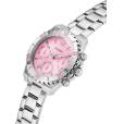 Стильные женские часы с дополнительным отображением на малых циферблатах даты, дня недели и текущего времени в 24-х часовом формате. Заводная головка с защитой. Браслет с раскладывающейся застежкой. Гарантия 2 года.