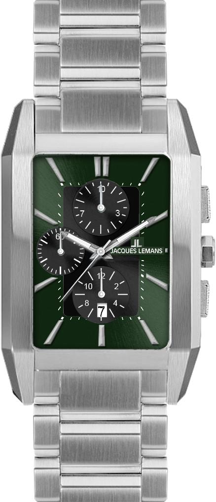 Стильные мужские часы-хронограф с секундомером в прямоугольном корпусе. Присутствует окошко даты. Циферблат закрывает минеральное стекло, дополненное сапфировым напылением. Браслет с раскладывающейся застежкой. Гарантия 2 года.