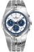 Мужские наручные часы-хронограф с секундомером. Присутствует окошко даты. Дополнительно на малом циферблате отображается текущее время в 24-х часовом формате. Циферблат закрывает минеральное стекло Crystex повышенной прочности. Заводная головка с защитой. Браслет с раскладывающейся застежкой. Гарантия 2 года.