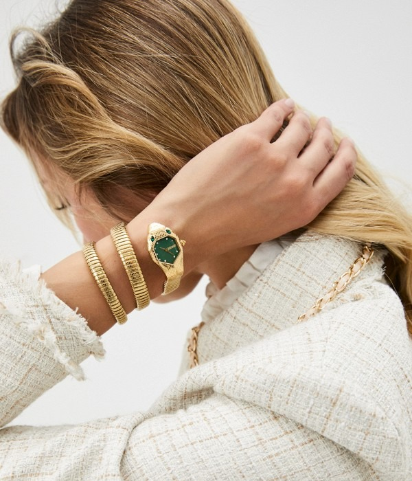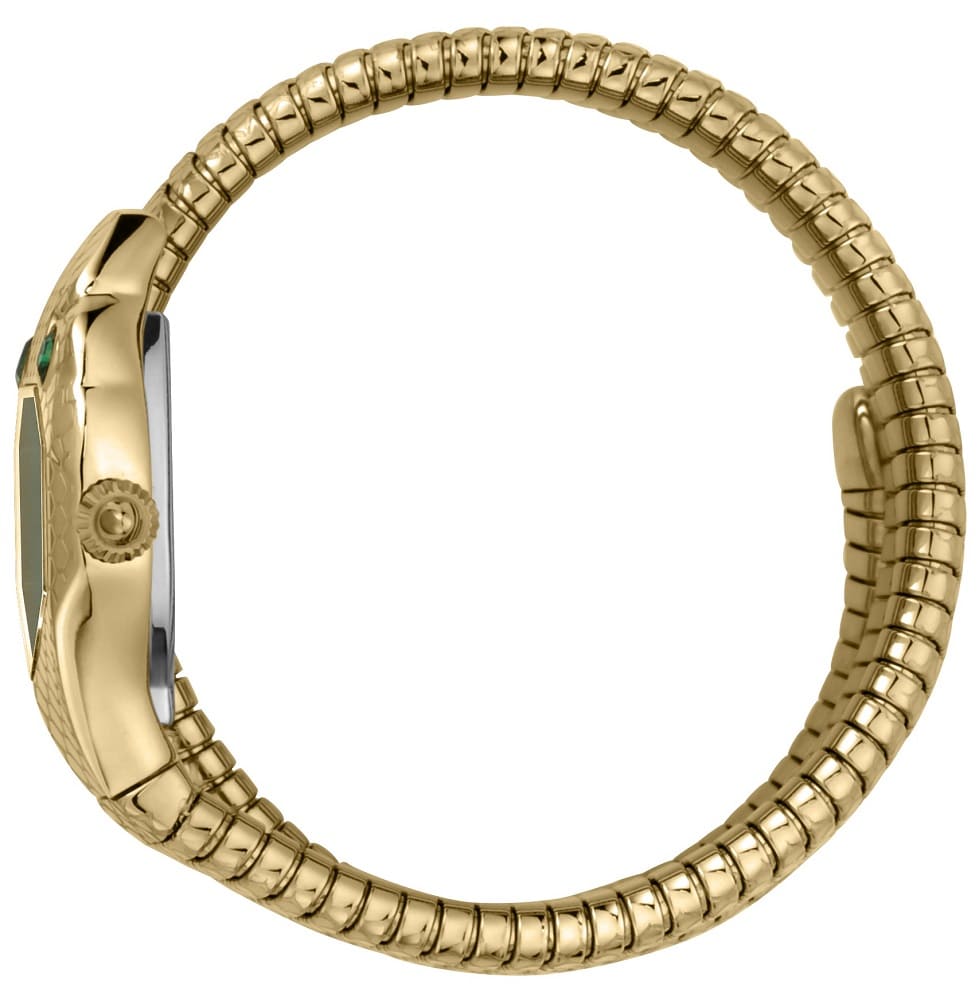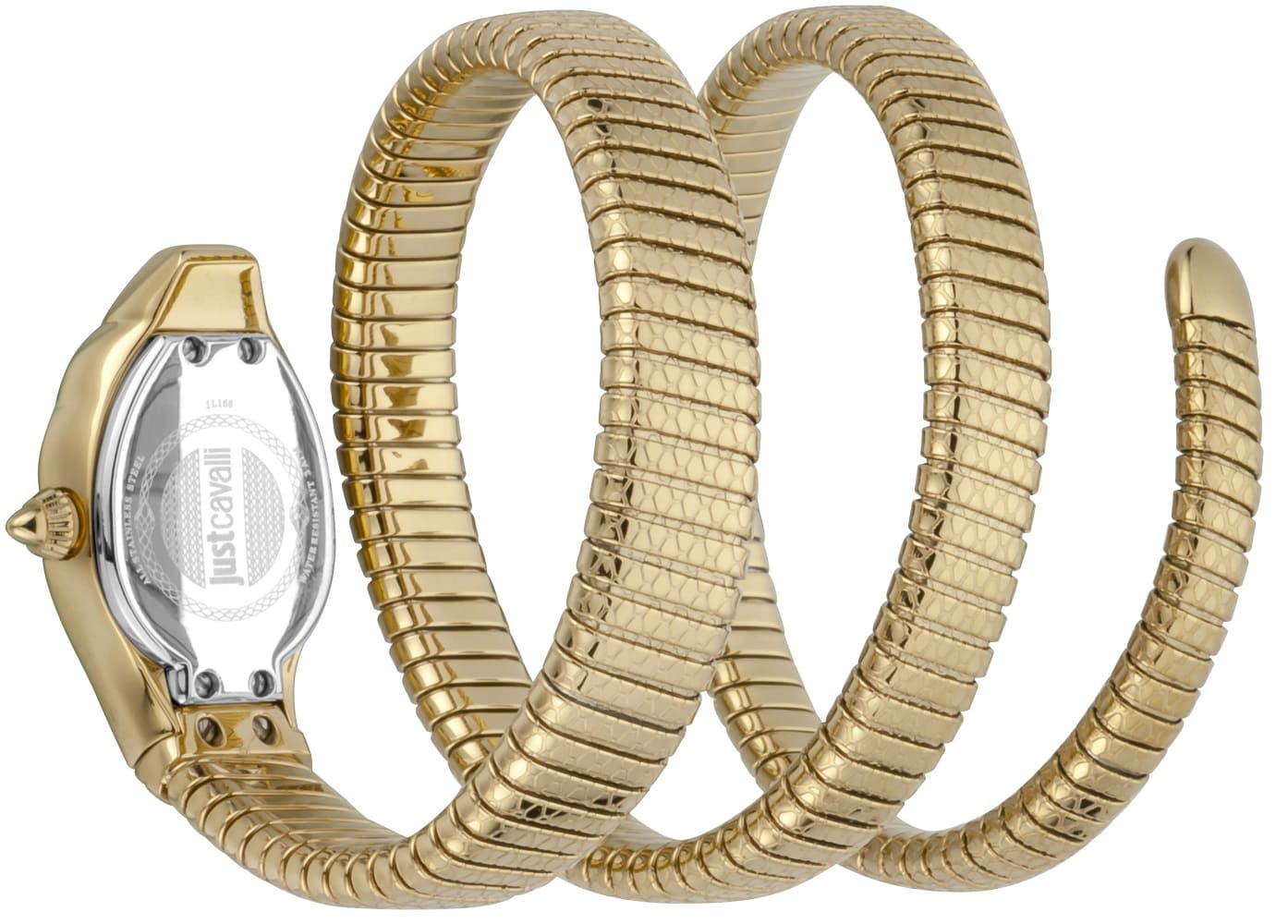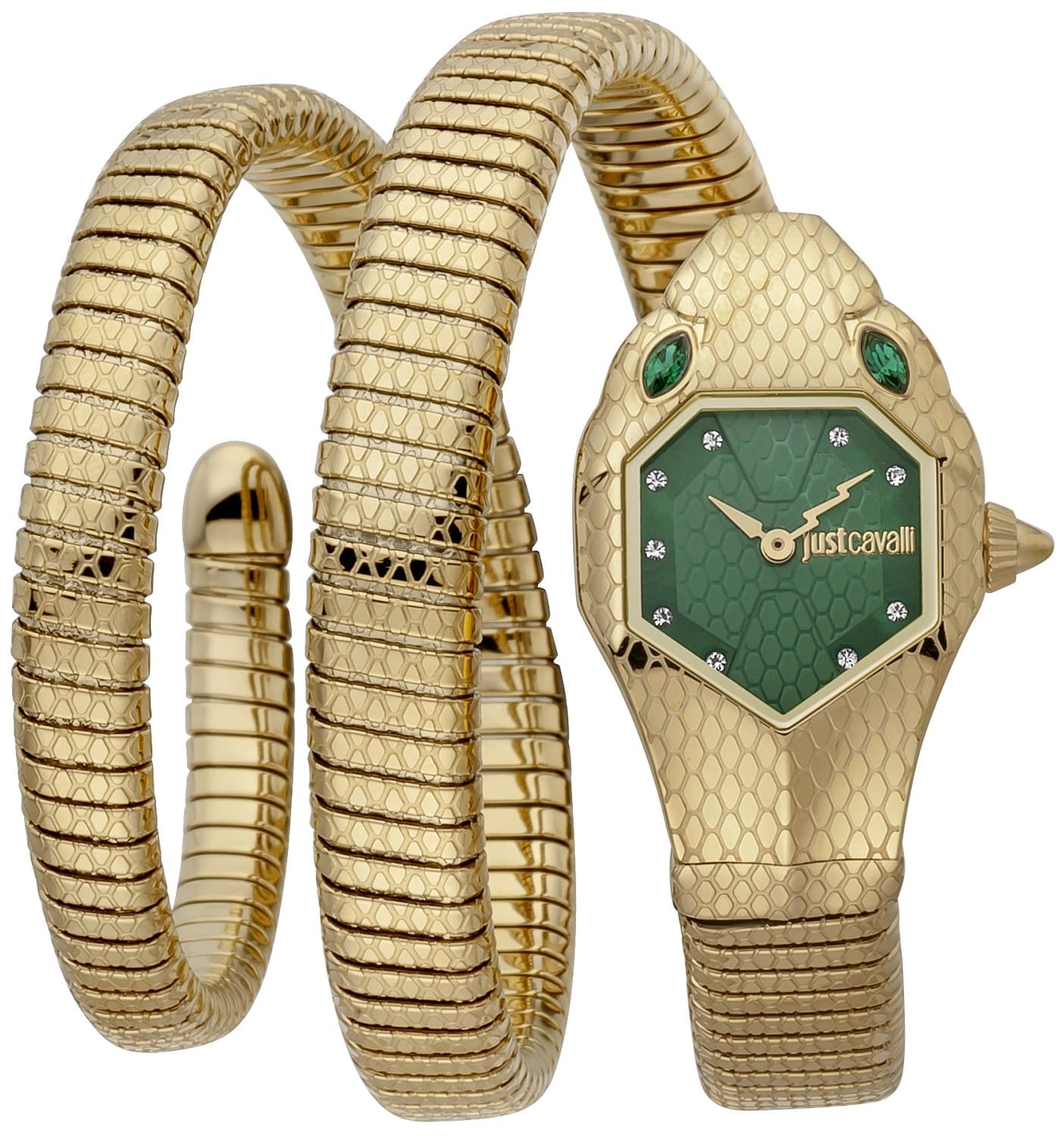 Стильные женские часы с интересным дизайном: выполнены в форме змеи, обвивающей руку. Циферблат украшен кристаллами. Задняя крышка с гравировкой крепится к корпусу на винтах. Надежный стальной браслет. Гарантия 2 года.