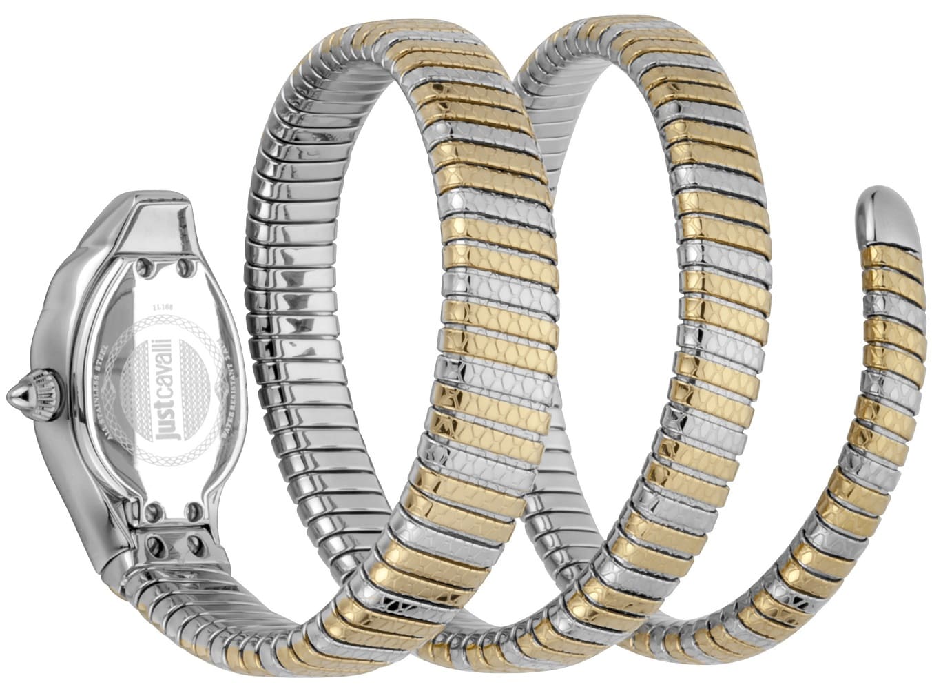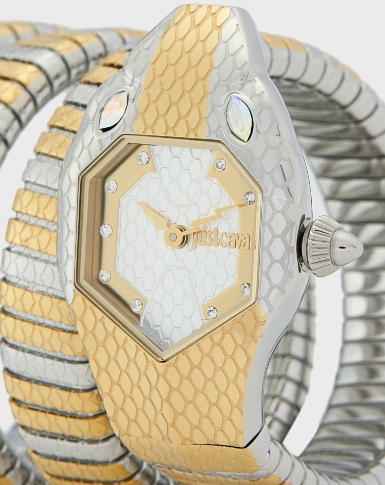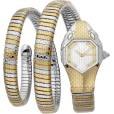 Стильные женские часы с интересным дизайном: выполнены в форме змеи, обвивающей руку. Циферблат украшен кристаллами. Задняя крышка с гравировкой крепится к корпусу на винтах. Надежный стальной браслет. Гарантия 2 года.