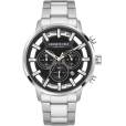 Мужские часы-хронограф с секундомером. Частично прозрачный циферблат. Дополнительное отображение на малом циферблате текущего времени в 24-х часовом формате. Браслет с раскладывающейся застежкой. Гарантия 2 года.