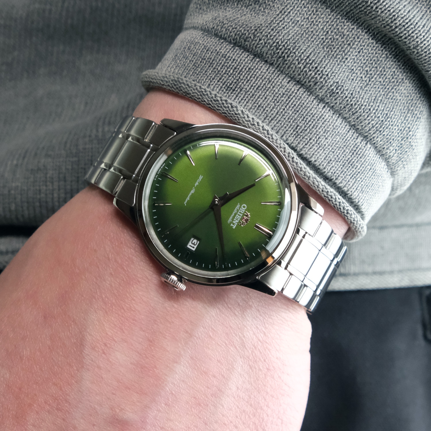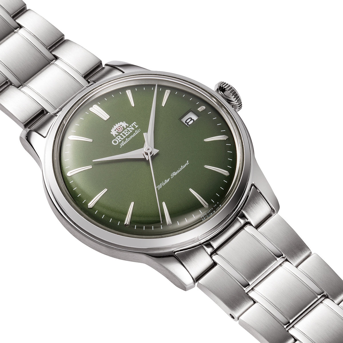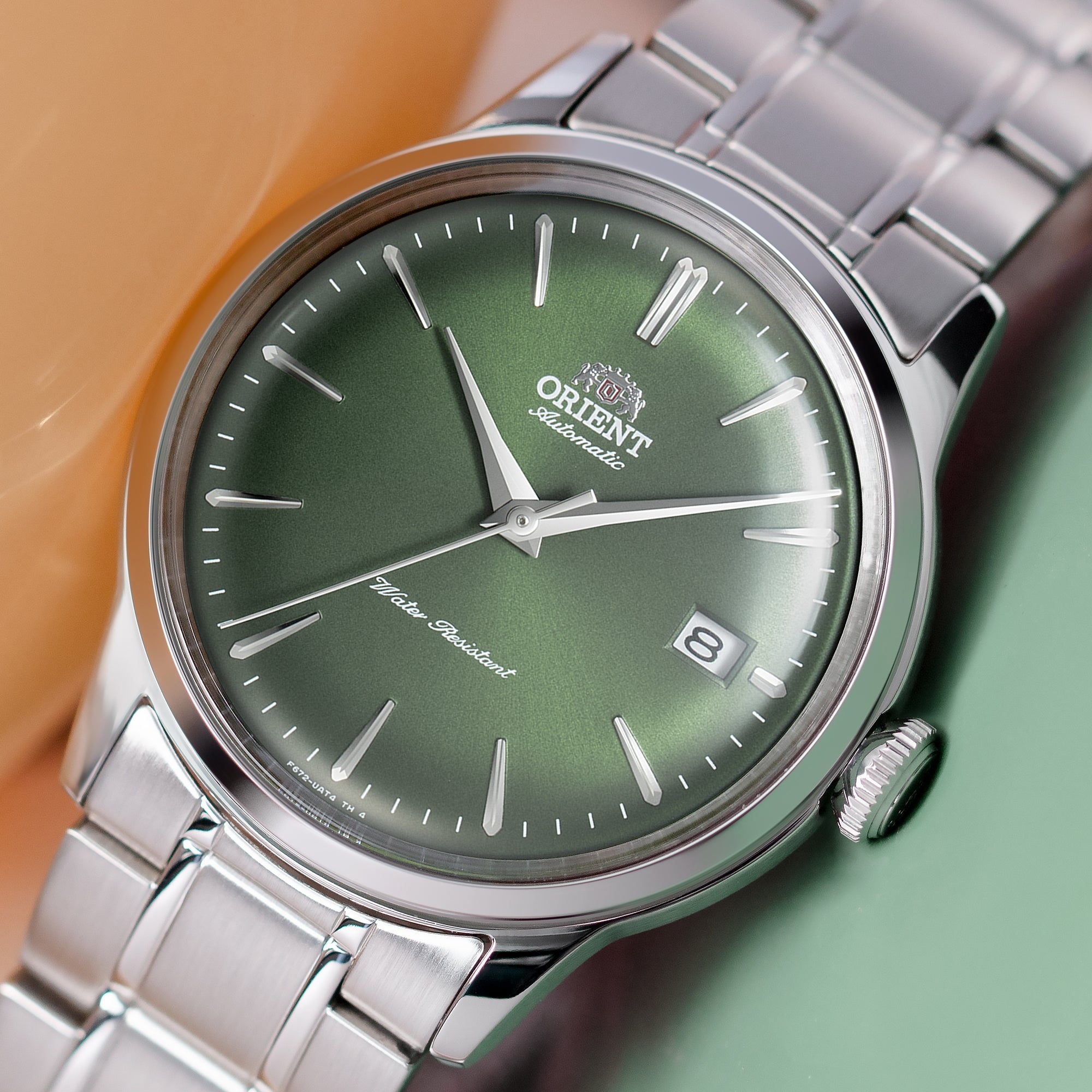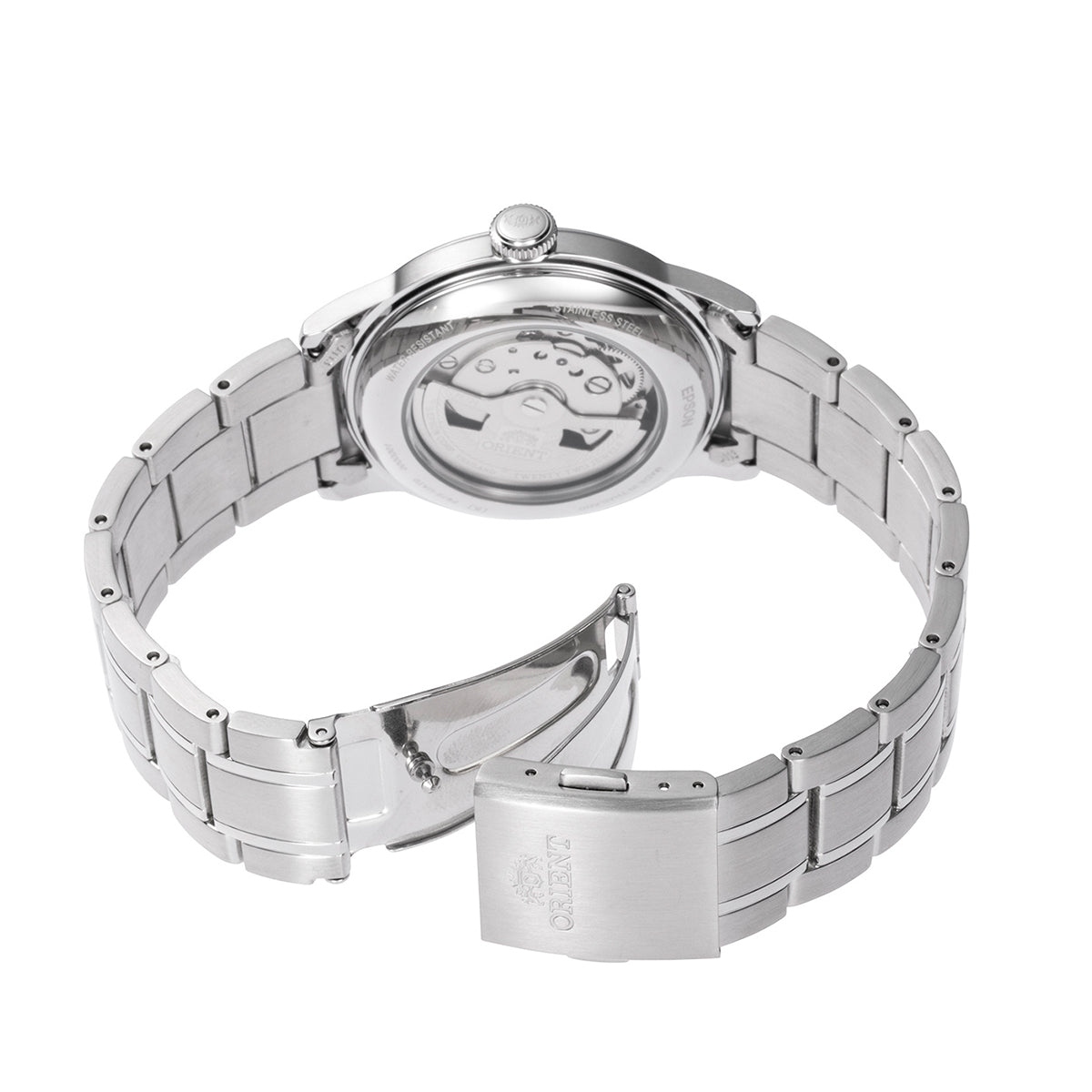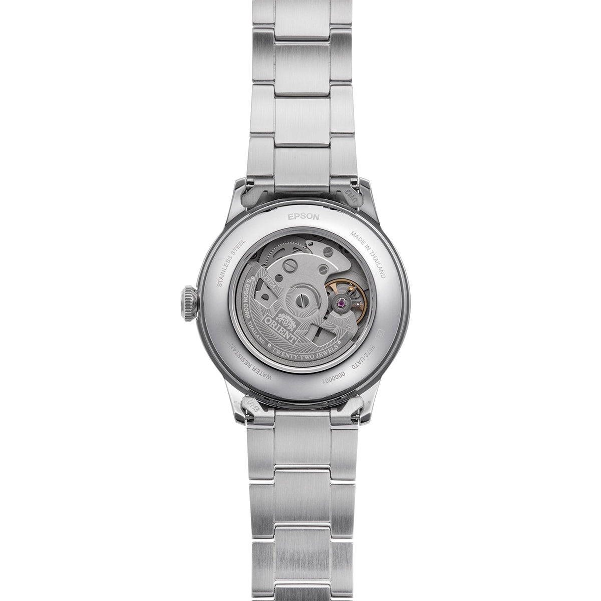 Мужские механические наручные часы Orient Classic Bambino 2-го поколения. В механизме 22 камня, частота 21600 полуколебаний в час. Запас хода 40 часов. Возможность ручного завода. Функция stop-second. Присутствует окошко даты. Циферблат закрывает выпуклое минеральное стекло. Прозрачная задняя крышка. Браслет с раскладывающейся застежкой. Гарантия 2 года.