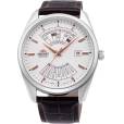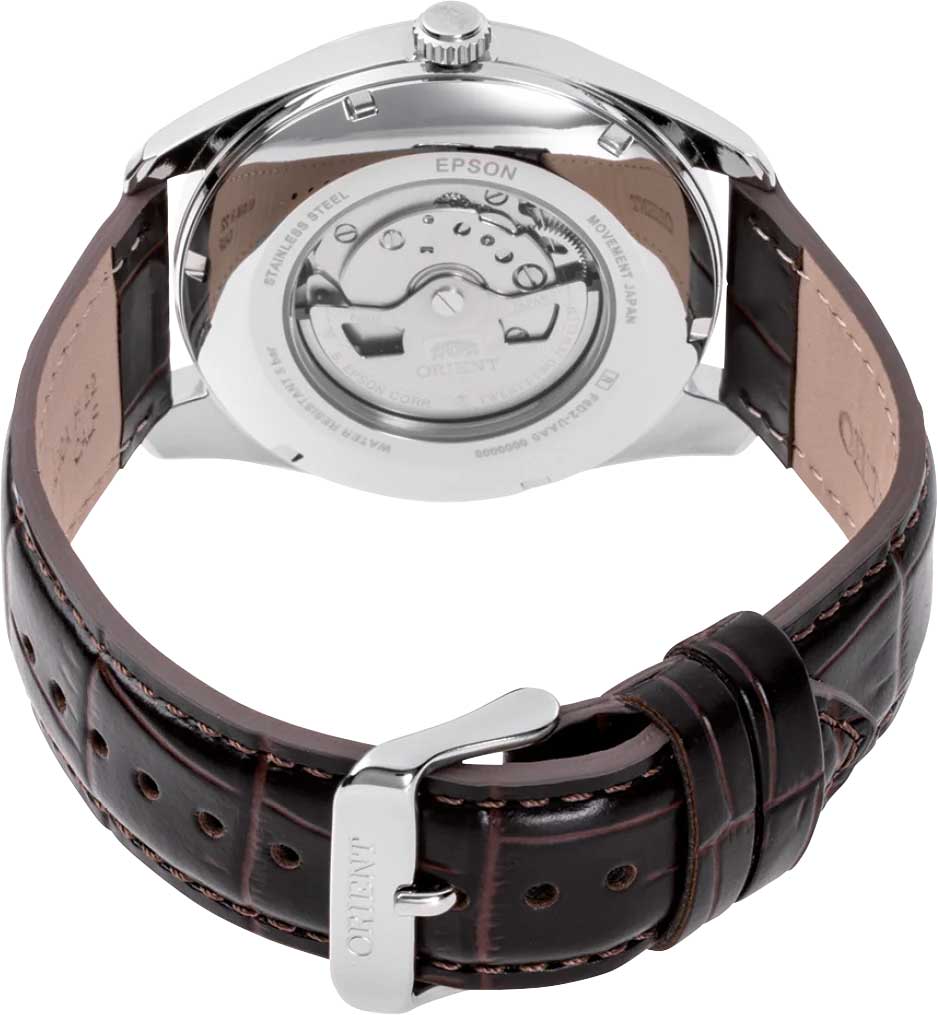 Мужские механические наручные часы Orient с полным календарем. В механизме 21 камень, частота 21600 полуколебаний в час. Запас хода 40 часов. Возможность ручного завода. Функция stop-second. Завинчивающаяся прозрачная задняя крышка. Ремешок с классической застежкой. Гарантия 2 года.