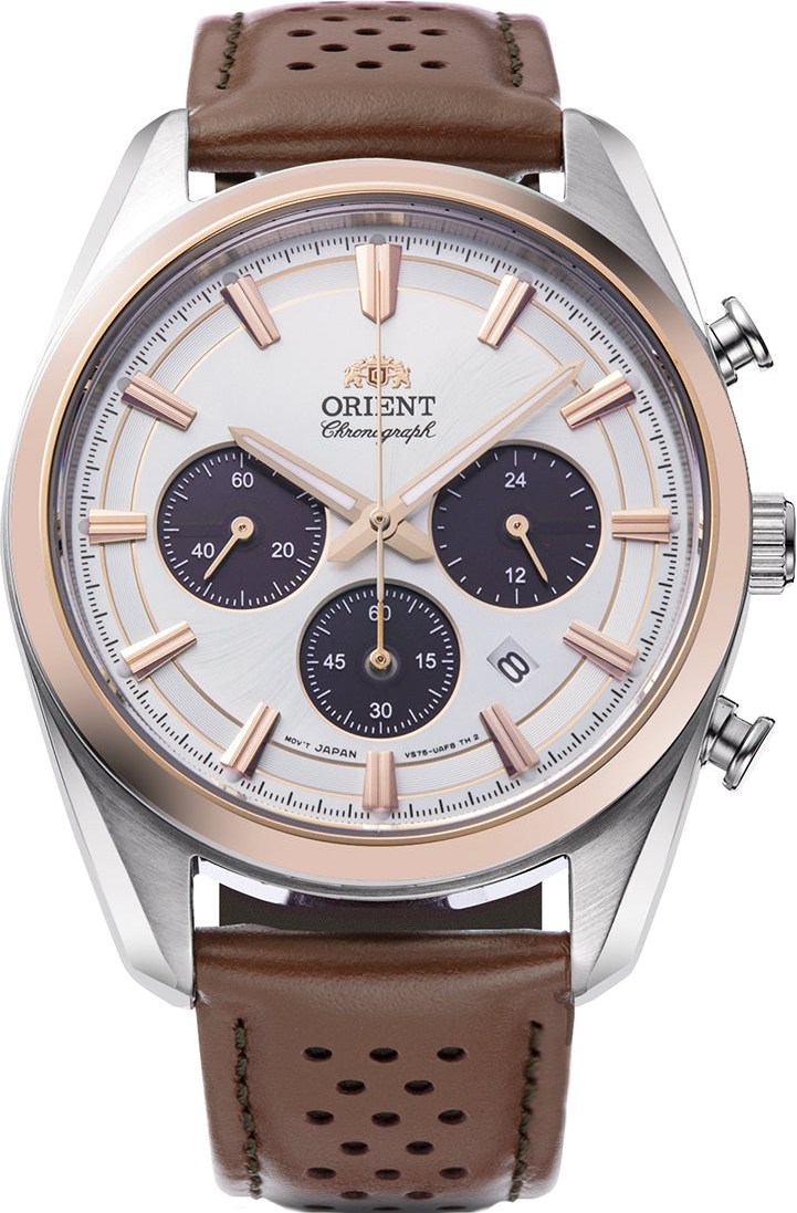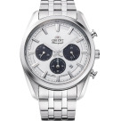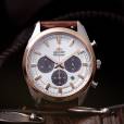Мужские наручные часы-хронограф с секундомером. Питание от солнечной энергии. Запас хода при полном заряде батарейки составляет 6 месяцев. Секундомер с точностью 1 сек. и временем измерения 60 мин. Секундная стрелка вынесена на отдельный циферблат. Дополнительно на малом циферблате отображается текущее время в 24-х часовом формате. Присутствует окошко даты. Завинчивающаяся задняя крышка. Ремешок с классической застежкой, обхват запястья от 150 до 190 мм. Вес часов 67 грамма. Гарантия 2 года.