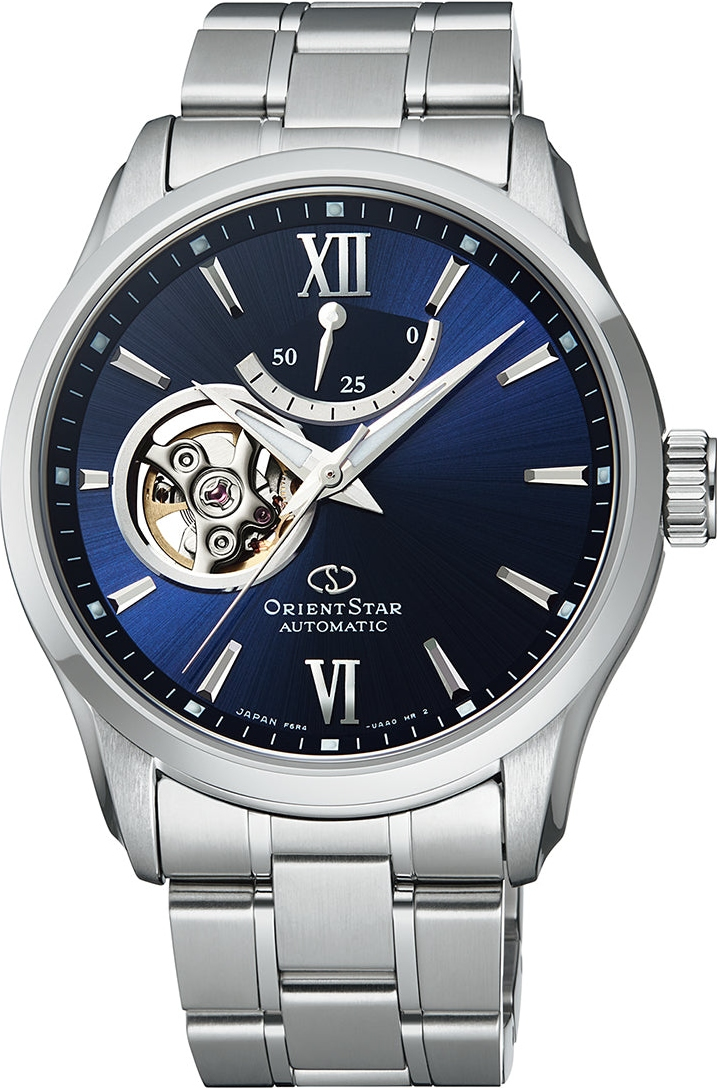 Мужские механические наручные часы Orient Star. Открытый баланс хода. Калибр механизма F6R42 на 22 камнях. Частота 21 600 полуколебаний в час. Запас хода 50 часов. Возможность ручного завода. Ретроградный указатель запаса хода до 50 часов. Циферблат закрывает устойчивое к потертостям и царапинам сапфировое стекло, дополненное антибликовым покрытием. Завинчивающаяся прозрачная задняя крышка. Браслет с раскладывающейся застежкой. Гарантия 1 год.
