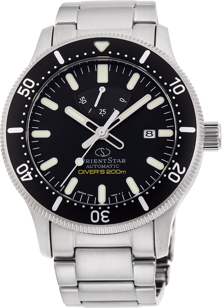 Мужские механические наручные часы Orient Star. Сертифицированы по дайверскому стандарту ISO для подводного плавания. Калибр механизма F6N47 на 22 камнях. Частота 21 600 полуколебаний в час. Запас хода 50 часов. Возможность ручного завода. Ретроградный указатель запаса хода до 50 часов. Циферблат закрывает устойчивое к потертостям и царапинам сапфировое стекло c антибликовым покрытием. Безель вращается в одном направлении. Завинчивающиеся рифленая заводная головка и задняя крышка. Браслет с раскладывающейся застежкой, застежка с системой блокировки. Гарантия 1 год.
