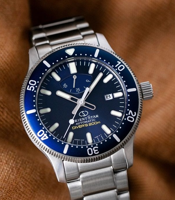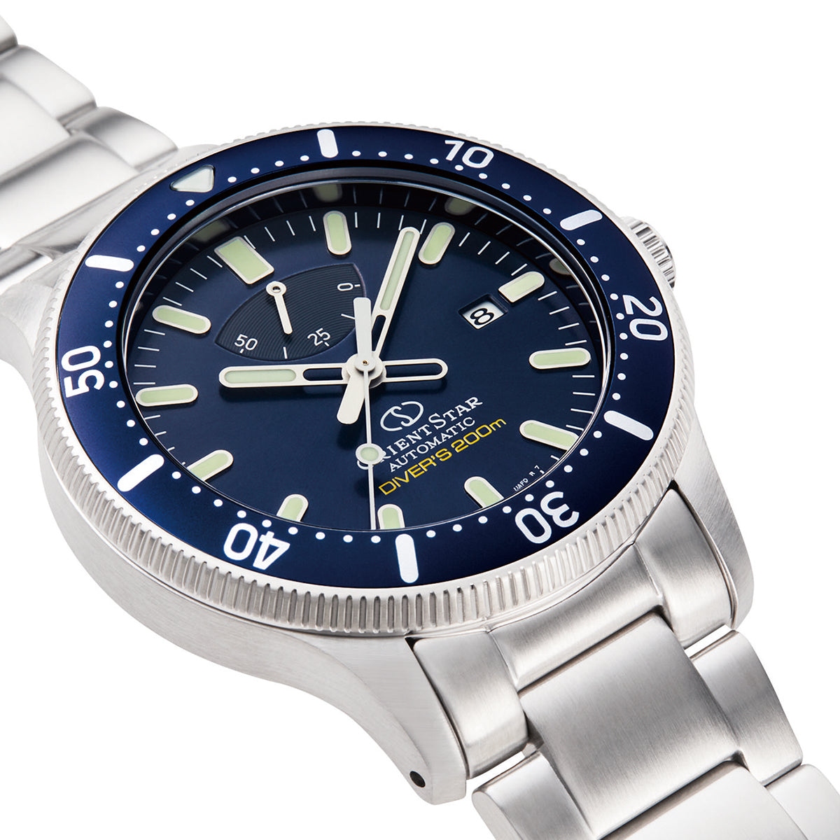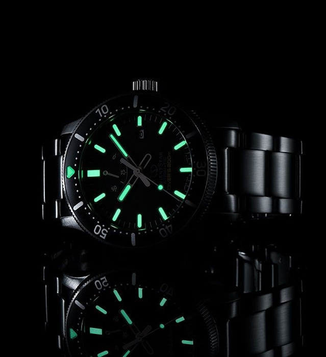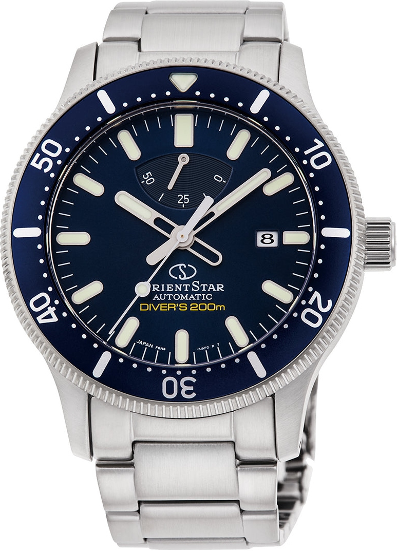 Мужские механические наручные часы Orient Star. Сертифицированы по дайверскому стандарту ISO для подводного плавания. Калибр механизма F6N47 на 22 камнях. Частота 21 600 полуколебаний в час. Запас хода 50 часов. Возможность ручного завода. Ретроградный указатель запаса хода до 50 часов. Циферблат закрывает устойчивое к потертостям и царапинам сапфировое стекло c антибликовым покрытием. Безель вращается в одном направлении. Завинчивающиеся рифленая заводная головка и задняя крышка. Браслет с раскладывающейся застежкой, застежка с системой блокировки. Гарантия 1 год.