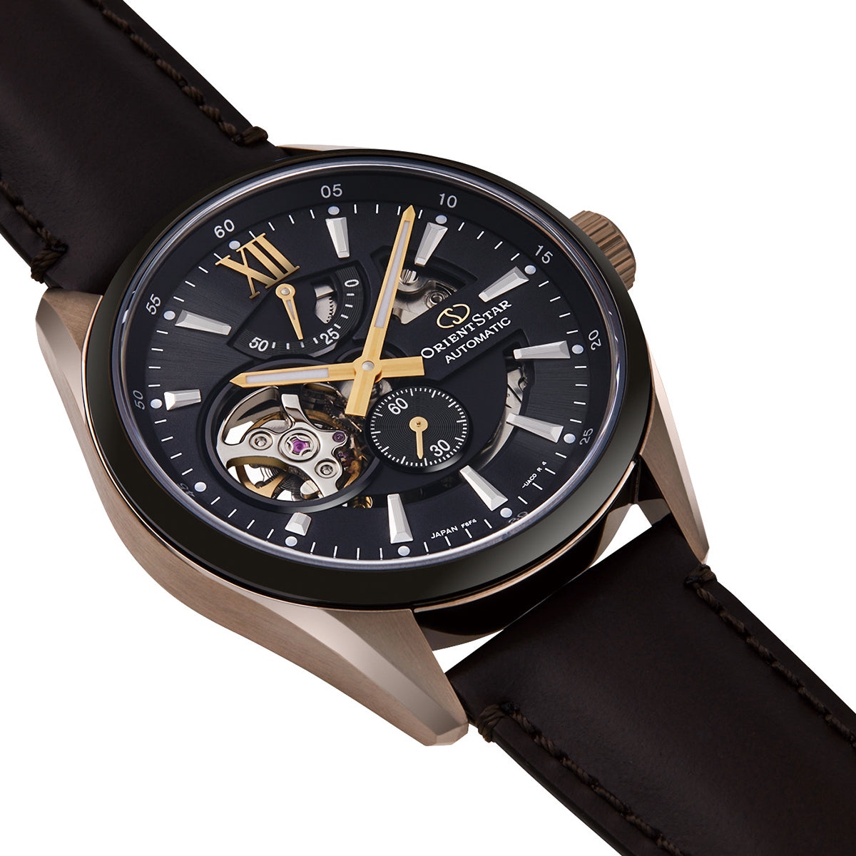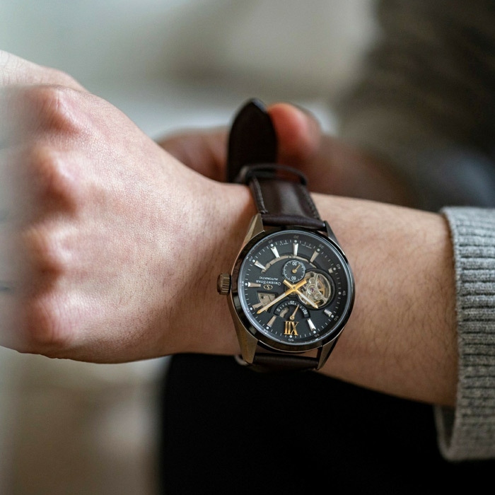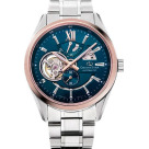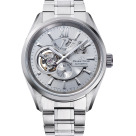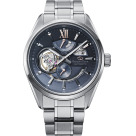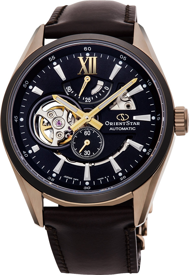Мужские механические наручные часы Orient Star. Модель Modern Skeleton сочетает в себе механическую привлекательность часов-скелетонов и простой современный дизайн. В механизме 24 камня, частота 21600 полуколебаний в час. Ретроградный индикатор запаса хода на 50 часов. Возможность ручного завода. Секундная стрелка вынесена на отдельный циферблат. Сквозь прозрачное окошко на циферблате можно наблюдать работу механизма часов. Завинчивающаяся прозрачная задняя крышка. Ремешок с раскладывающейся застежкой. Гарантия 1 год.
