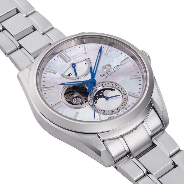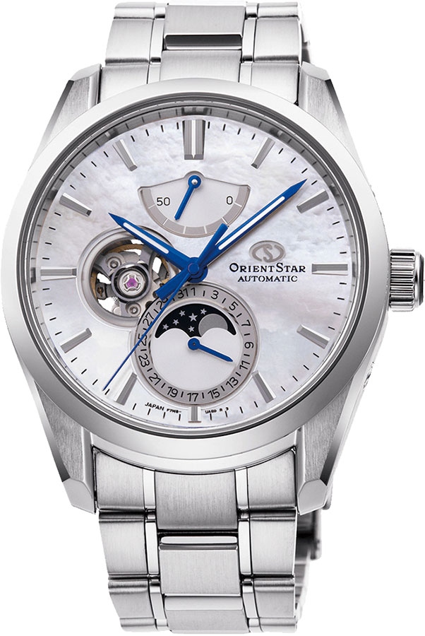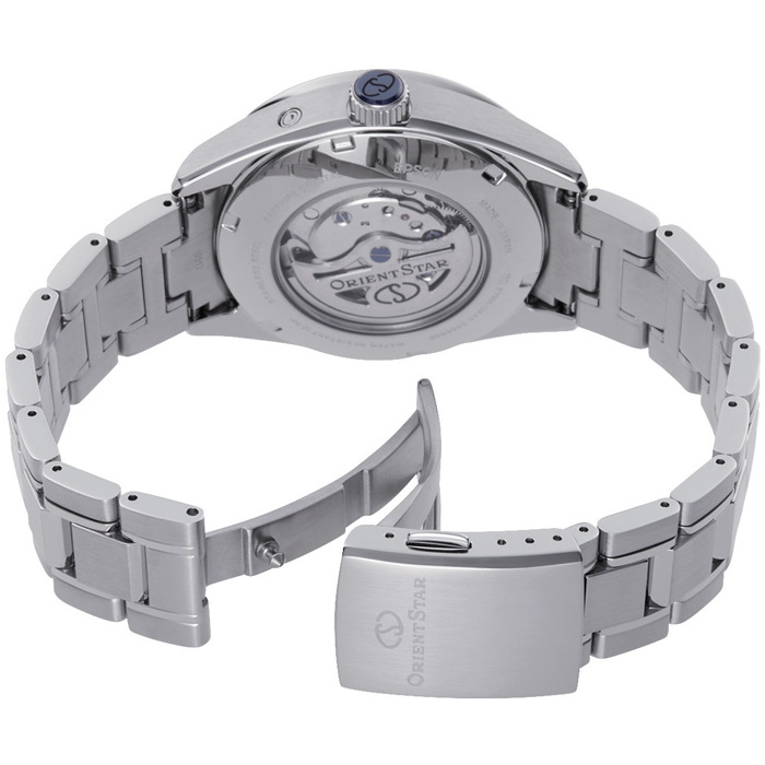 Мужские механические наручные часы Orient Star. Открытый баланс хода. Калибр механизма F7M63 на 22 камнях. Частота 21 600 полуколебаний в час. Запас хода 50 часов. Возможность ручного завода. Ретроградный указатель запаса хода до 50 часов. Присутствует отображение даты и фазы луны. Циферблат закрывает устойчивое к потертостям и царапинам сапфировое стекло, дополненное антибликовым покрытием. Элементы корпуса отполированы вручную по технологии Zaratsu. Завинчивающаяся прозрачная задняя крышка. Браслет с раскладывающейся застежкой. Вес часов 170 грамм. Гарантия 1 год.