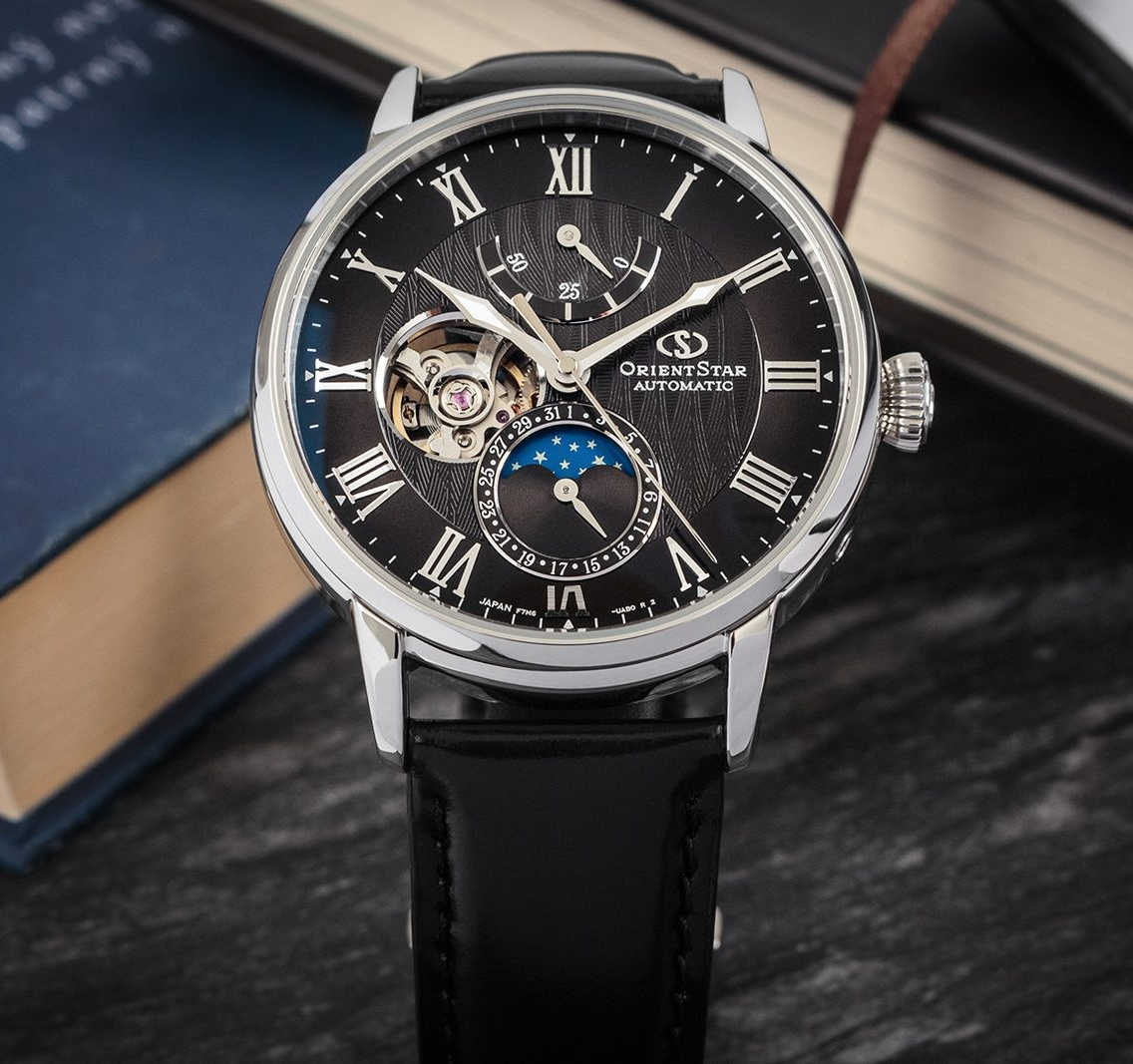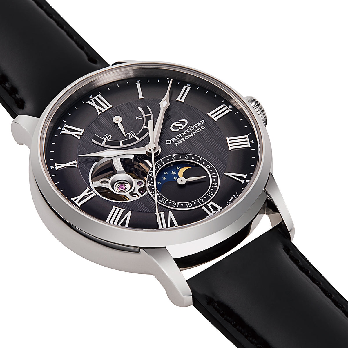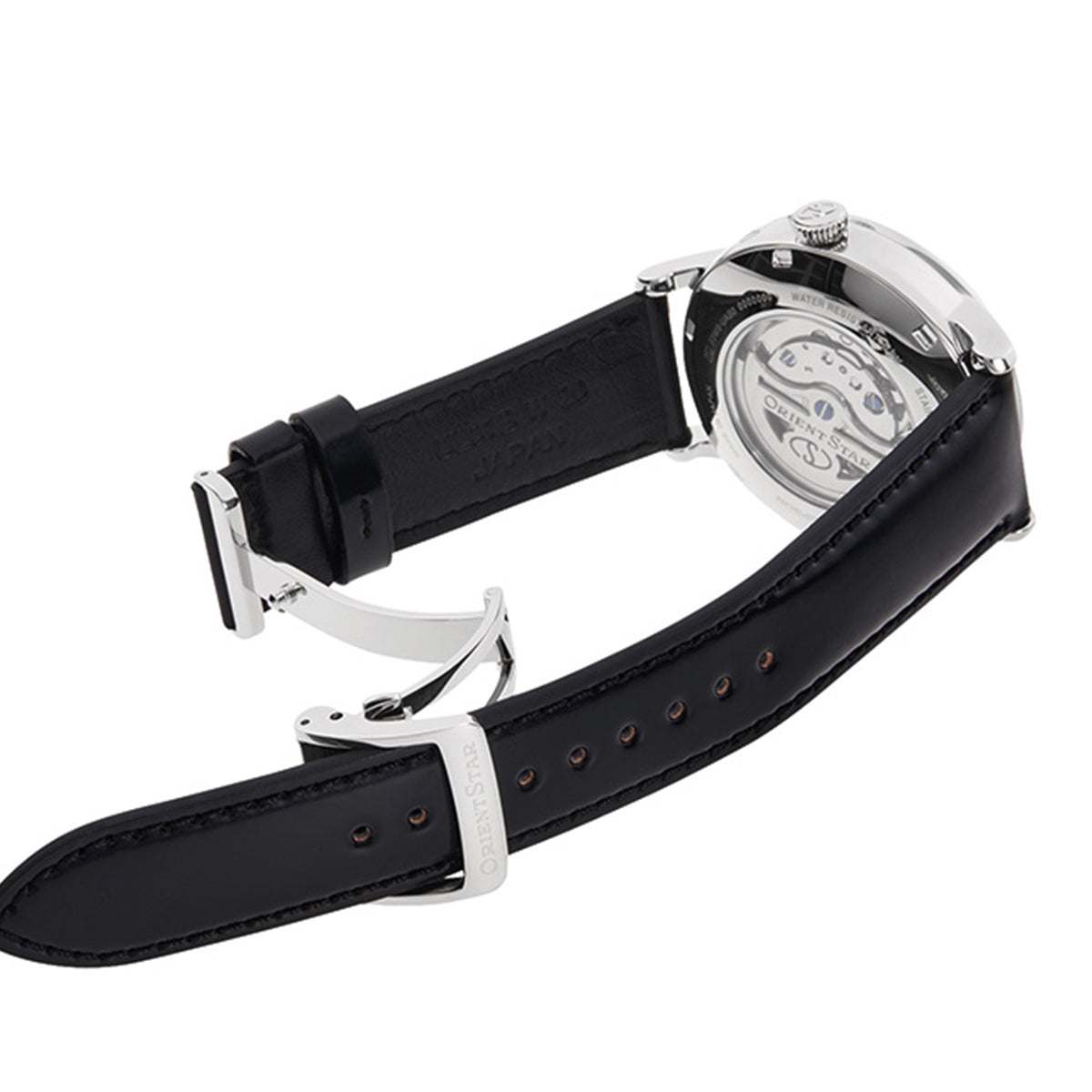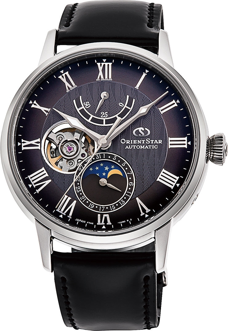 Мужские механические наручные часы Orient Star. Открытый баланс хода. Калибр механизма F7M62 на 22 камнях. Частота 21 600 полуколебаний в час. Запас хода 50 часов. Возможность ручного завода. Ретроградный указатель запаса хода до 50 часов. Присутствует отображение даты и фазы луны. Циферблат закрывает устойчивое к потертостям и царапинам сапфировое стекло, дополненное антибликовым покрытием. Завинчивающаяся прозрачная задняя крышка. Ремешок с раскладывающейся застежкой. Гарантия 1 год.