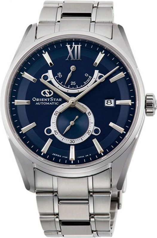 Мужские механические часы с автоподзаводом из серии Orient Star Automatic. В механизме 24 камня, частота 21600 полуколебаний в час. Ретроградный индикатор запаса хода на 50 часов. Возможность ручного завода. Секундная стрелка вынесена на отдельный циферблат. Циферблат закрывает устойчивое к царапинам сапфировое стекло с супер антибликовым покрытием. Элементы корпуса отполированы вручную по технологии Zaratsu. Завинчивающаяся прозрачная задняя крышка. Браслет с раскладывающейся застежкой. Гарантия 1 год.