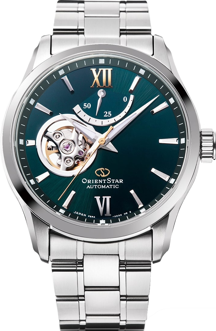 Мужские механические наручные часы Orient Star. Открытый баланс хода. Калибр механизма F6R42 на 22 камнях. Частота 21 600 полуколебаний в час. Запас хода 50 часов. Возможность ручного завода. Ретроградный указатель запаса хода до 50 часов. Циферблат закрывает устойчивое к потертостям и царапинам сапфировое стекло, дополненное антибликовым покрытием. Завинчивающаяся прозрачная задняя крышка. Браслет с раскладывающейся застежкой. Гарантия 1 год.