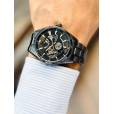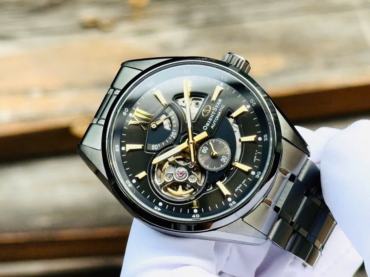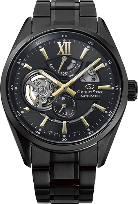 Мужские механические наручные часы Orient Star. Модель Modern Skeleton сочетает в себе механическую привлекательность часов-скелетонов и простой современный дизайн. В механизме 24 камня, частота 21600 полуколебаний в час. Ретроградный индикатор запаса хода на 50 часов. Возможность ручного завода. Секундная стрелка вынесена на отдельный циферблат. Сквозь прозрачное окошко на циферблате можно наблюдать работу механизма часов. Завинчивающаяся прозрачная задняя крышка. Браслет с раскладывающейся застежкой. Гарантия 1 год.