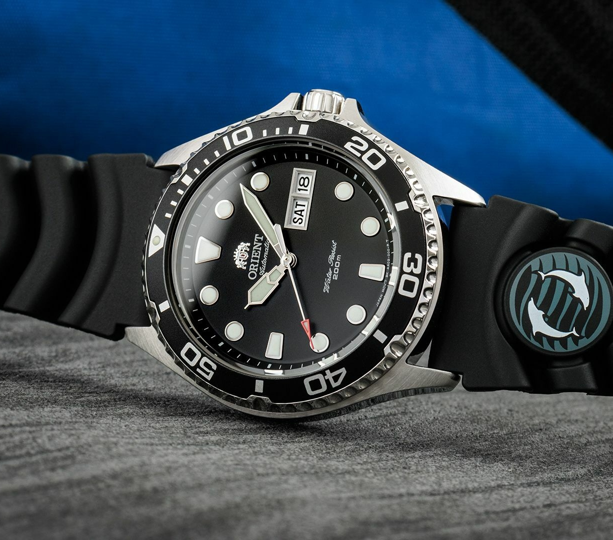 Мужские механические часы Orient Sports Ray II Automatic с крупными метками и повышенной водозащитой. В механизме 22 камня, частота 21600 полуколебаний в час. Запас хода 40 часов. Возможность ручного завода. Функция stop-second. Противоударное устройство оси баланса. Присутствует окошко даты и дня недели. Завинчивающаяся заводная головка с защитой. Завинчивающаяся задняя крышка. Ремешок с классической застежкой. Гарантия 2 года.