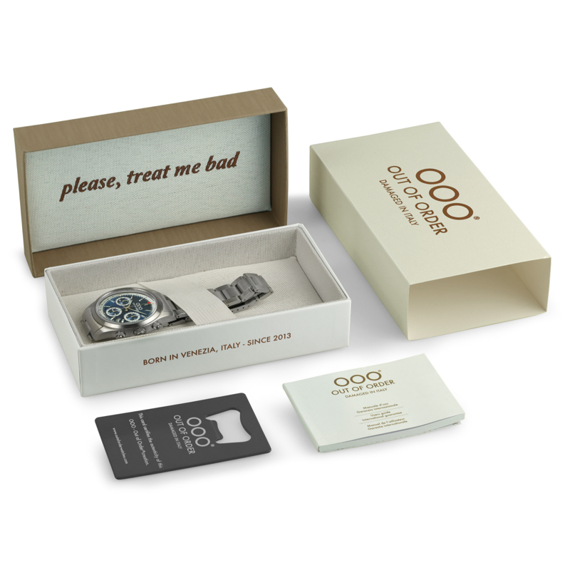 При покупке часов у нас, вы получаете официальную гарантию, дающую право обслуживать часы в официальных сервисных центрах бренда Out of Order.