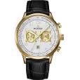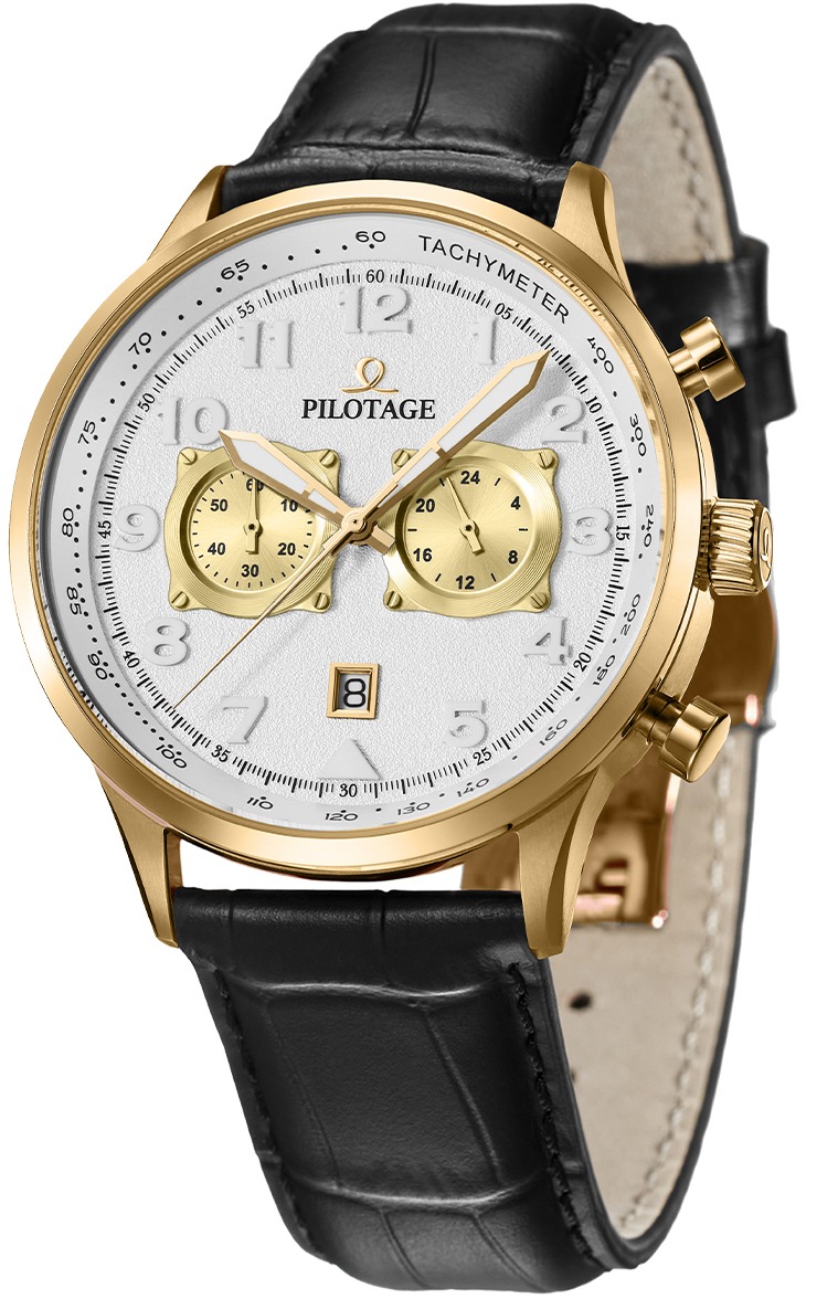 Часы Pilotage Biplane Chrono - мужские наручные часы в авиаторской стилистике, вдохновлённые эстетикой бипланов и духом пилотирования. Модель оснащена кварцевым механизмом Miyota OS21 японского производства, выполняющим функции хронографа: центральная стрелка отсчитывает секунды, счётчик на отметке «9 часов» фиксирует минуты, дополнительно присутствуют 24-х часовой индикатор и окошко даты. Корпус диаметром 43,5 мм выполнен из нержавеющей стали с комбинированной отделкой — зеркальной полировкой верхних граней и вертикальным брашированием боковых поверхностей. Циферблат с текстурой, напоминающей взлётную полосу, защищён сапфировым стеклом, практически неуязвимым для царапин. Для отличной читаемости в темноте крупные арабские цифры и стрелки покрыты люминесцентным составом; вместо цифры «6» размещён стилизованный указатель высотомера. На внутреннем кольце циферблата нанесена тахиметрическая шкала, а индикаторы хронографа и 24-х часового формата выделены накладными пластинами с декоративной гравировкой, полировкой «солнечные лучи» и винтами. Заводная головка имеет спиральный рельеф и украшена логотипом бренда, отсылающим к «мёртвой петле». Завинчивающаяся задняя крышка обеспечивает водозащиту 10 бар (100 м) и декорирована гравировкой с изображением самолёта и надписью «Let’s fly!». Ремешок из натуральной кожи оснащён раскладывающейся застёжкой-клипсой с двумя боковыми кнопками для надёжной фиксации. В комплект входят индивидуальная упаковка, паспорт и двухлетняя гарантия. Часы сочетают функциональность хронографа, прочность материалов и выразительный дизайн, подчёркивающий связь с авиационной тематикой. Гарантия 2 года.