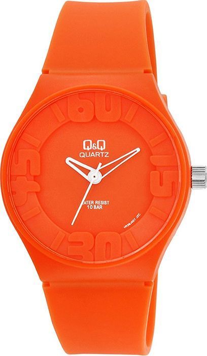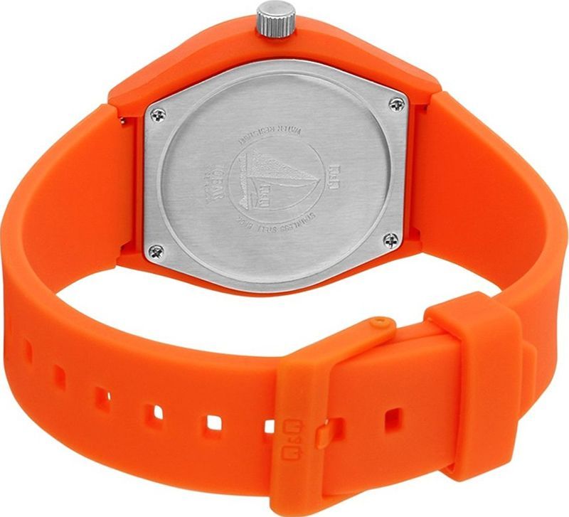 Яркие наручные часы в пластиковом корпусе. Задняя крышка из нержавеющей стали с креплением на винтах. Максимальный обхват запястья 205 мм. Вес 36 грамм. Гарантия 1 год.