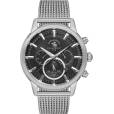 Мужские наручные часы с круглым корпусом и стальным браслетом. На отдельных малых циферблатах отображаются второй часовой пояс в 24-х часовом формате, день недели и текущее время в 24-х часовом формате. Присутствует апертура даты. Точность хода обеспечивает японский кварцевый механизм. Браслет с раскладывающейся застежкой. Гарантия 2 года.