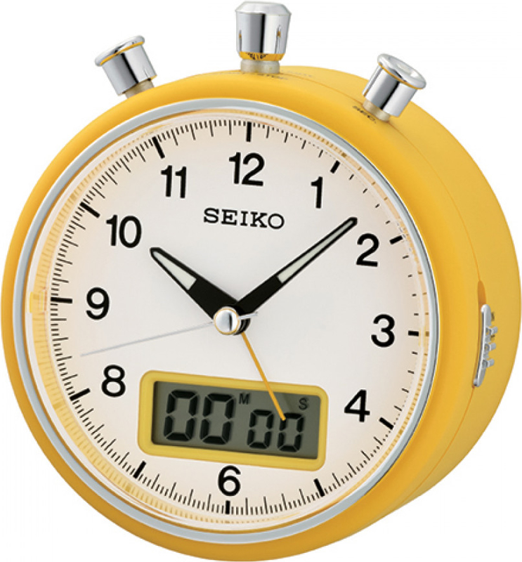 Кварцевый будильник, корпус сделан из пластика, секундомер и функция обратного отсчета времени (миним. 00 мин: 01 сек/макс. 99 мин: 59 сек), люминисцентная и точечная подсветка, плавный ход секундной стрелки, функция повтор сигнала. Питание от батарейки типа АА х 2 шт. Гарантия 1 год.