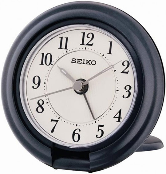 Кварцевый будильник Seiko. Подставка складывается защищая стекло от повреждений и делая будильник очень тонким, удобно для путешествия. Возрастающий сигнал будильника. Повтор сигнала будильника. Бесшумный плавный ход секундной стрелки. Подсветка и повтор сигнала активируются при нажатии на экран. Питание от батарейки типа ААА х 1 шт. Гарантия 1 год.