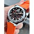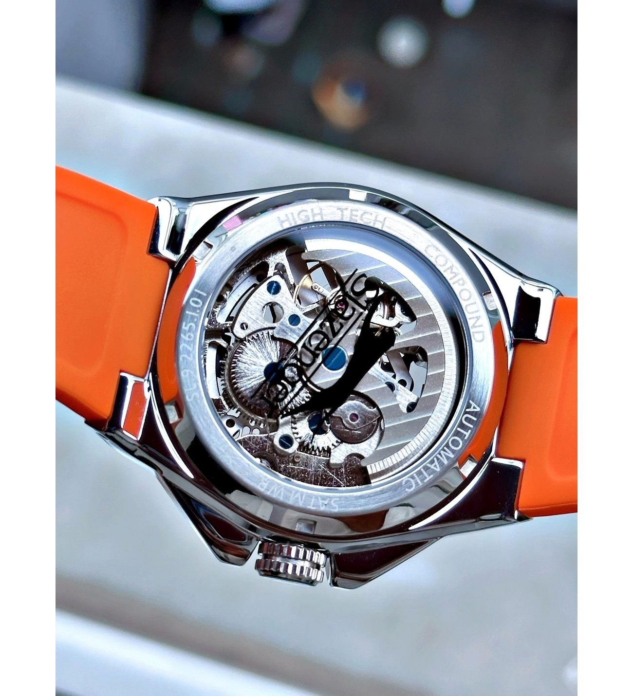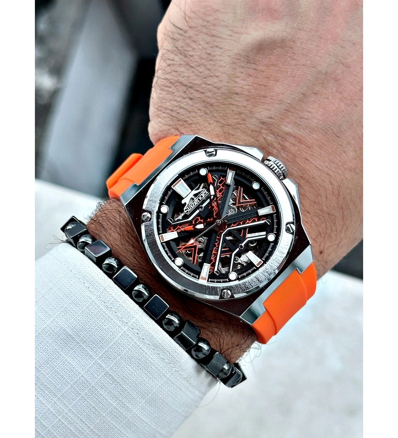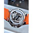 Мужские механические часы-скелетоны. Прозрачная завинчивающаяся задняя крышка. Заводная головка с защитой. Ремешок с классической застежкой. Вес часов 116 грамм. Гарантия 1 год.