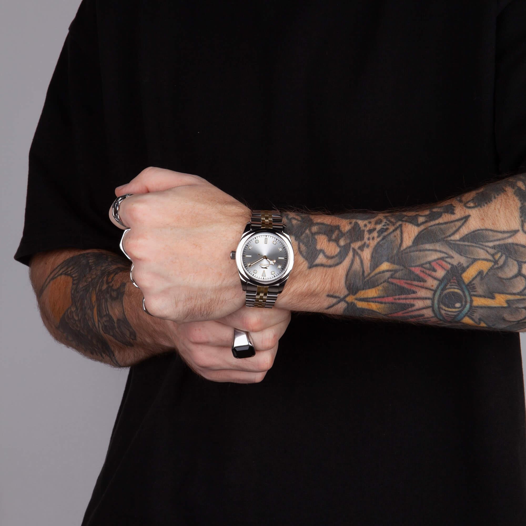 Мужские часы с комбинированным стальным браслетом и серебристым циферблатом. Дизайн циферблата выполнен в "дайверском" стиле. Идеально подходит для спортивных и повседневных образов. Точность хода обеспечивает японский кварцевый механизм Miyota. Завинчивающаяся задняя крышка. Браслет с раскладывающейся застежкой. Вес часов 135 грамм. Гарантия 1 год.